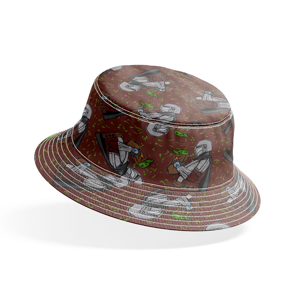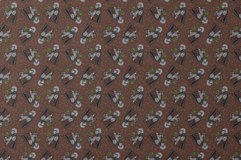 STAR WARS™ The Mandalorian and Grogu tossed on a burgundy red background with green accents. The perfect illustration for your favorite duo and your next STAR WARS crafting project.