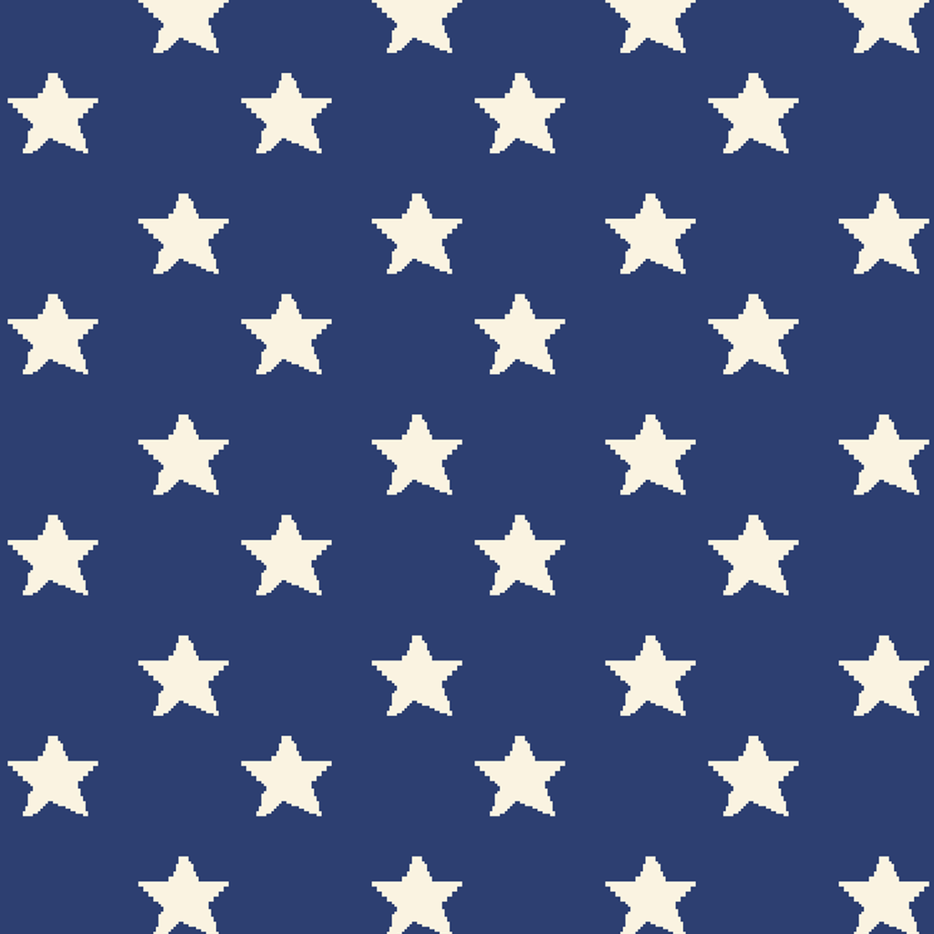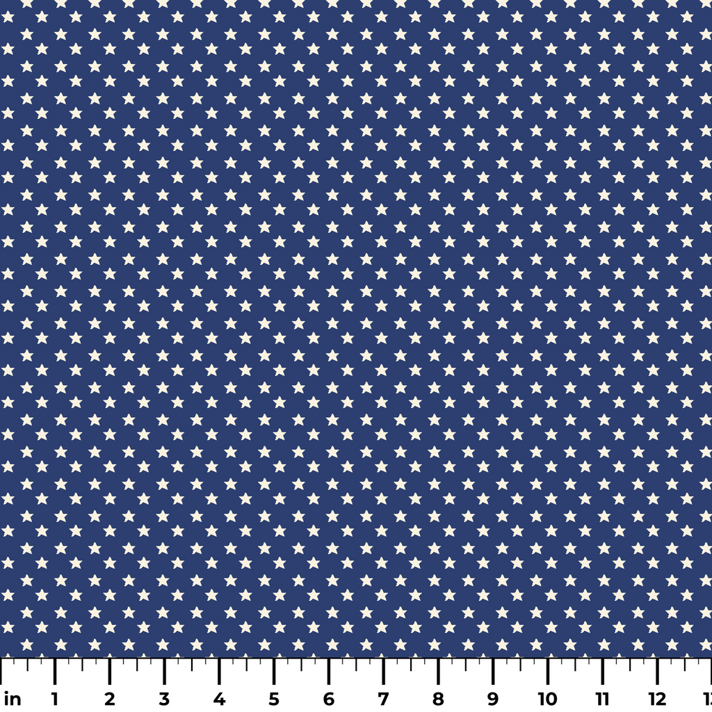 Classic cream stars shine brilliantly against a deep blue background in this timeless Americana pattern. The evenly spaced stars create a balanced, nostalgic design that captures patriotic spirit without being overly bold. Perfect for quilting projects that celebrate national holidays.