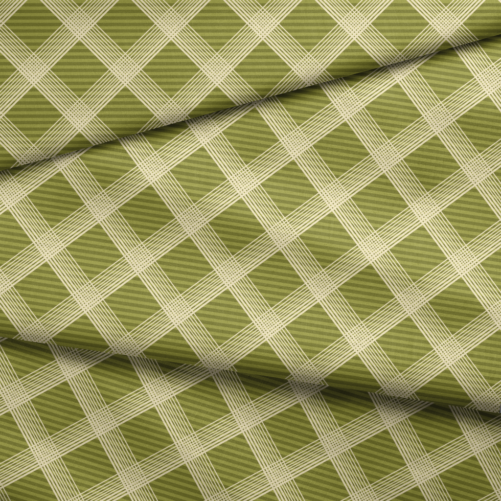 Elegant geometric pattern featuring olive green stripes and pale yellow diagonal crosshatching for a sophisticated mid-century modern aesthetic.