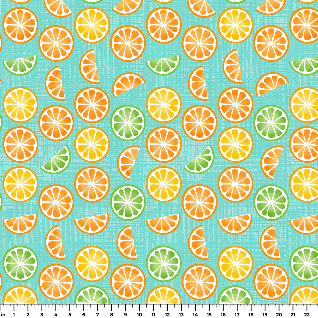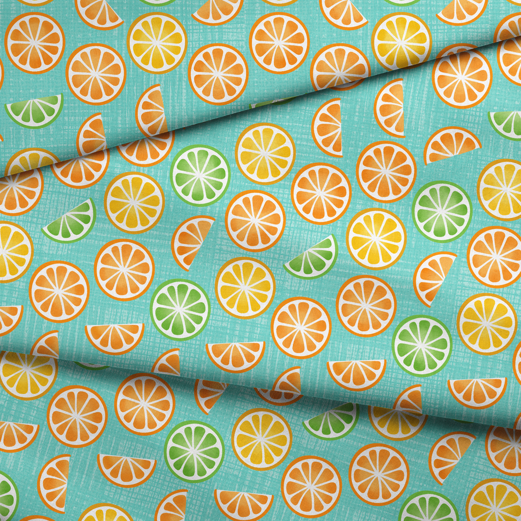 Juicy slices of oranges, lemons, and limes pop against a textured aqua background in this zesty citrus print. Bright, summery, and full of tangy vibes, this fabric is made for sunshine-filled days and tropical crafts.
