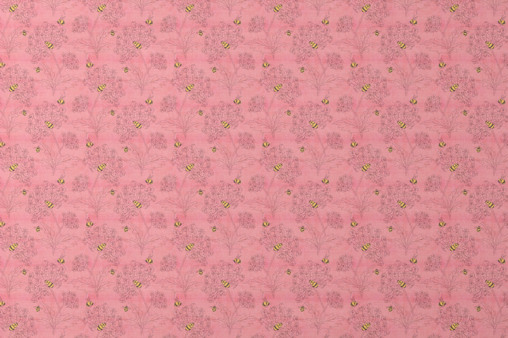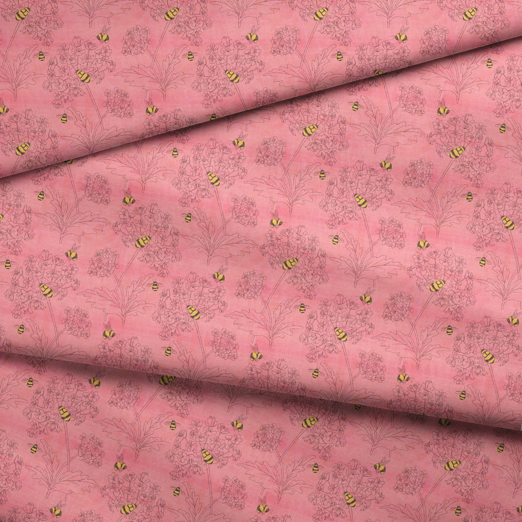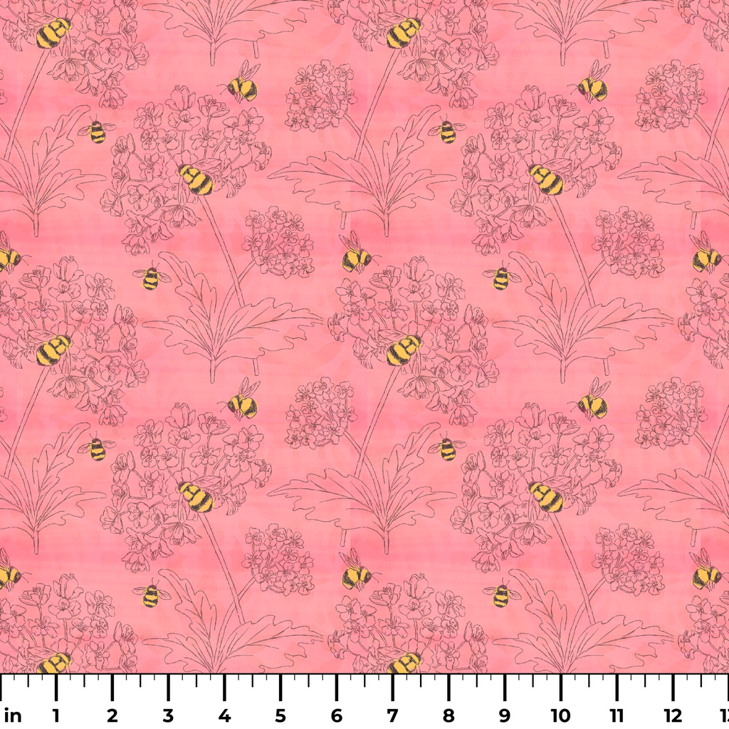 Susan Winget Bee Floral Sketch on Pink Fabric