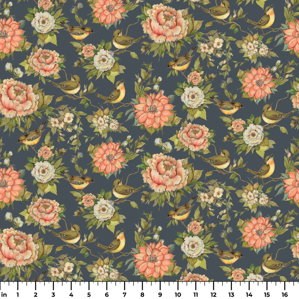 Susan Winget - Botanical Songbirds - Charcoal Floral Fabric