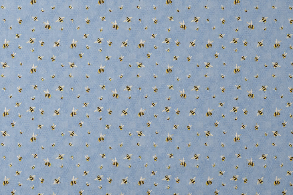 Adorable buzzing bumblebees flutter across a soft blue honeycomb background, creating a cheerful springtime aesthetic. Perfect for nursery decor, garden-themed projects, or nature-inspired crafts.