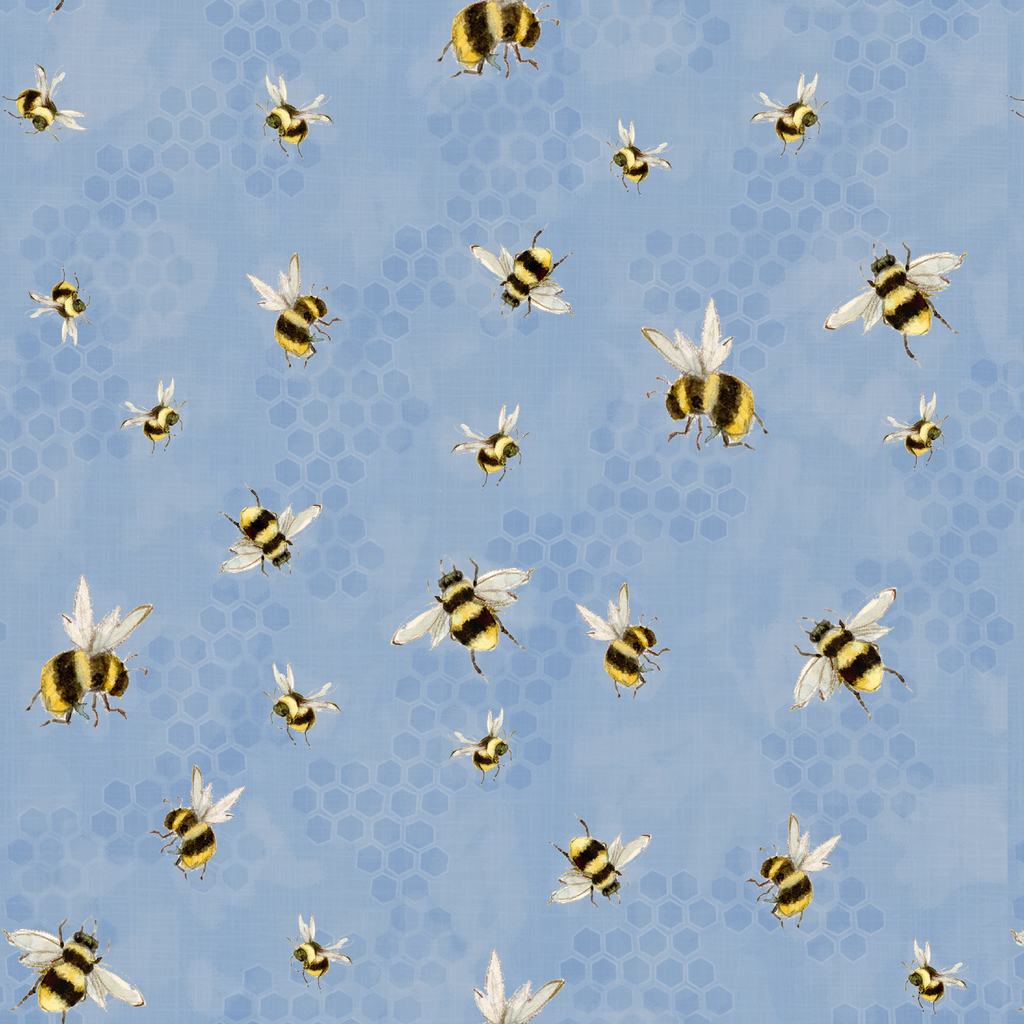 Susan Winget Buzzing Honeybees on Blue Wallpaper