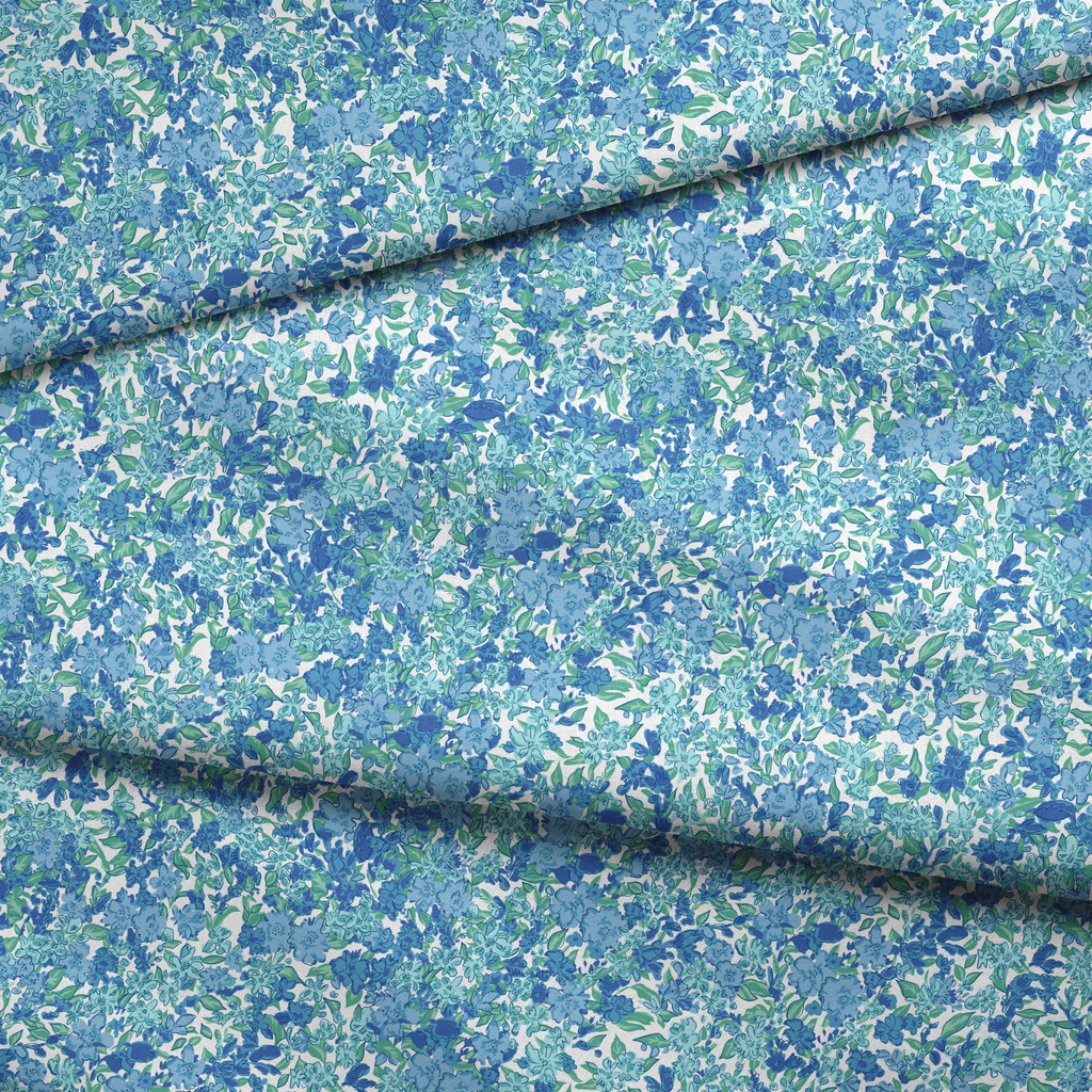 Vibrant abstract blue and green pattern featuring small flowers with a watercolor effect. Perfect for contemporary home decor.