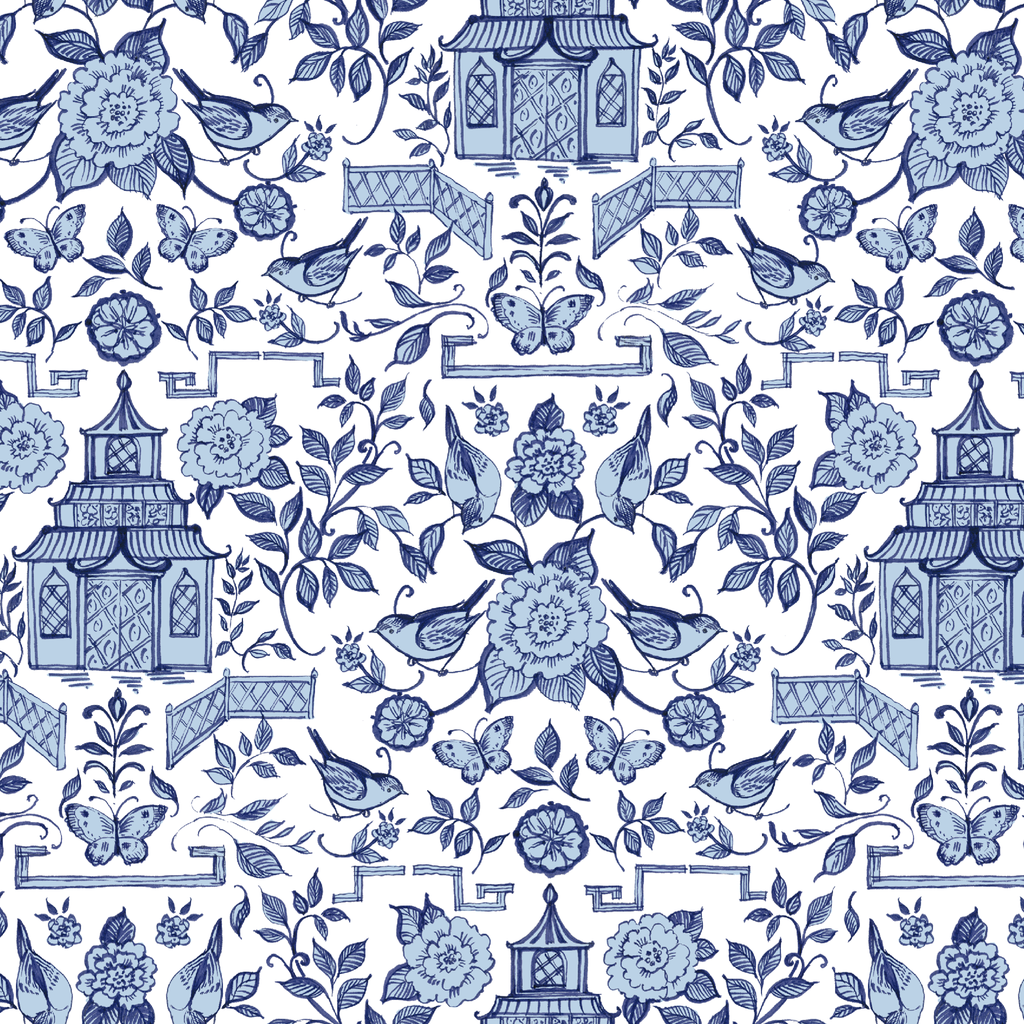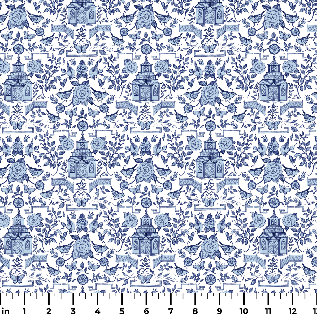 Susan Winget - Eastern Garden - White & Blue Pagoda Fabric