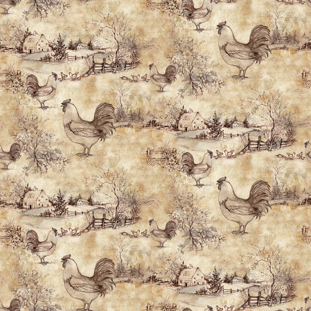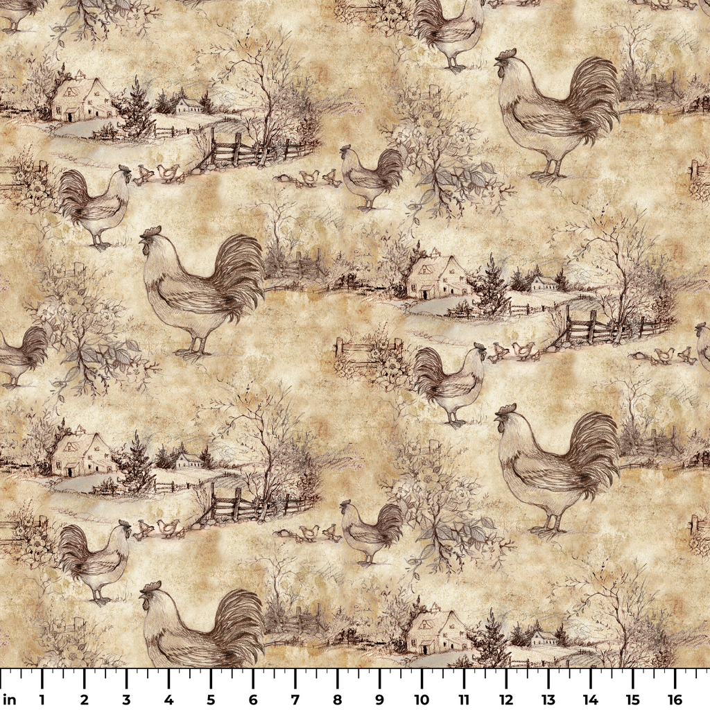 Susan Winget - Farmhouse Charm - Vintage Rooster Toile Fabric