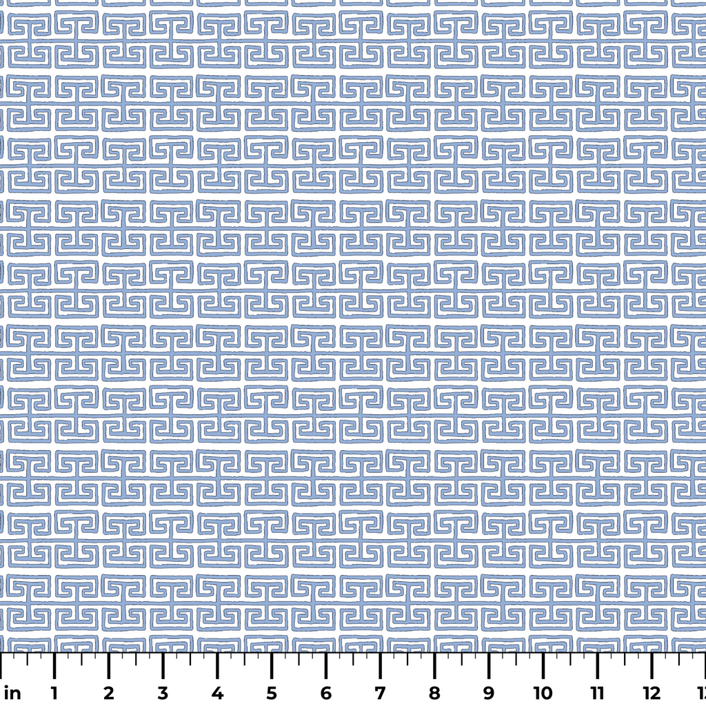 Susan Winget - Grecian Maze - Blue & White Geometric Fabric