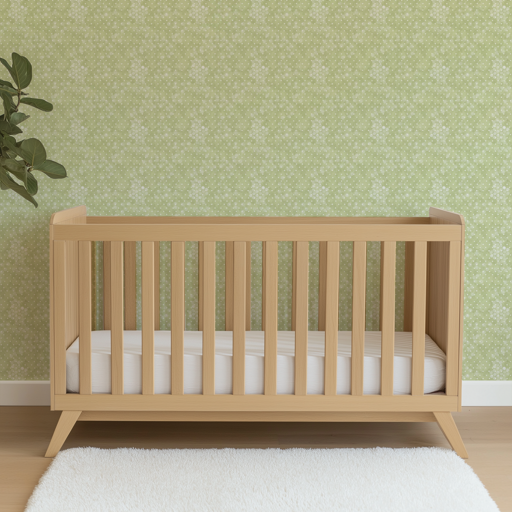 Delicate white polka dots scattered on a soft sage green background create a gentle, whimsical pattern perfect for nurseries or vintage-inspired spaces.