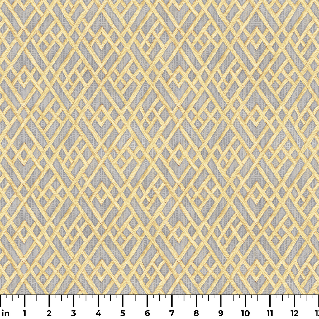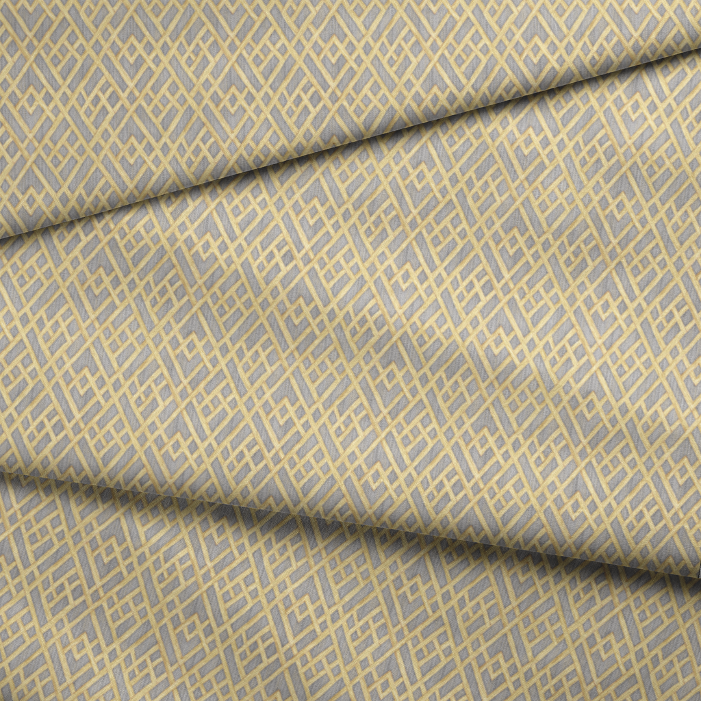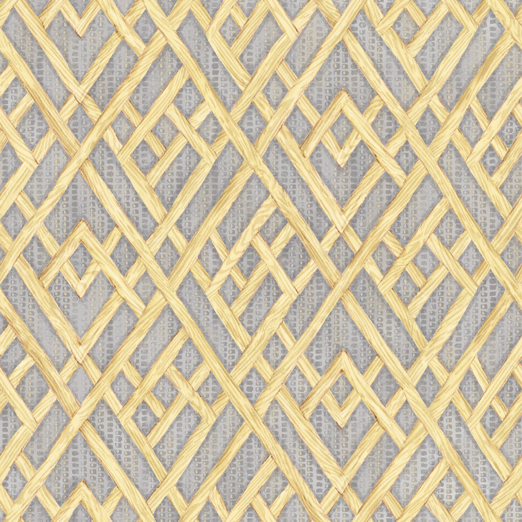 Elegant lattice-work in buttery yellow crisscrosses a subtle gray textured background in this sophisticated pattern. The hand-painted quality of the diagonal lines creates a natural warmth, while the soft color palette offers versatility for various interior projects. Perfect for creating accent pillows that brighten neutral spaces or for crafting elegant table linens that bring a touch of refined charm to your dining area.