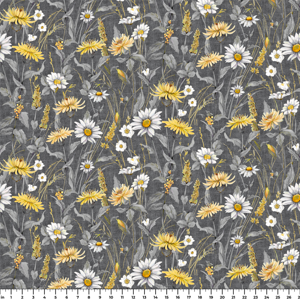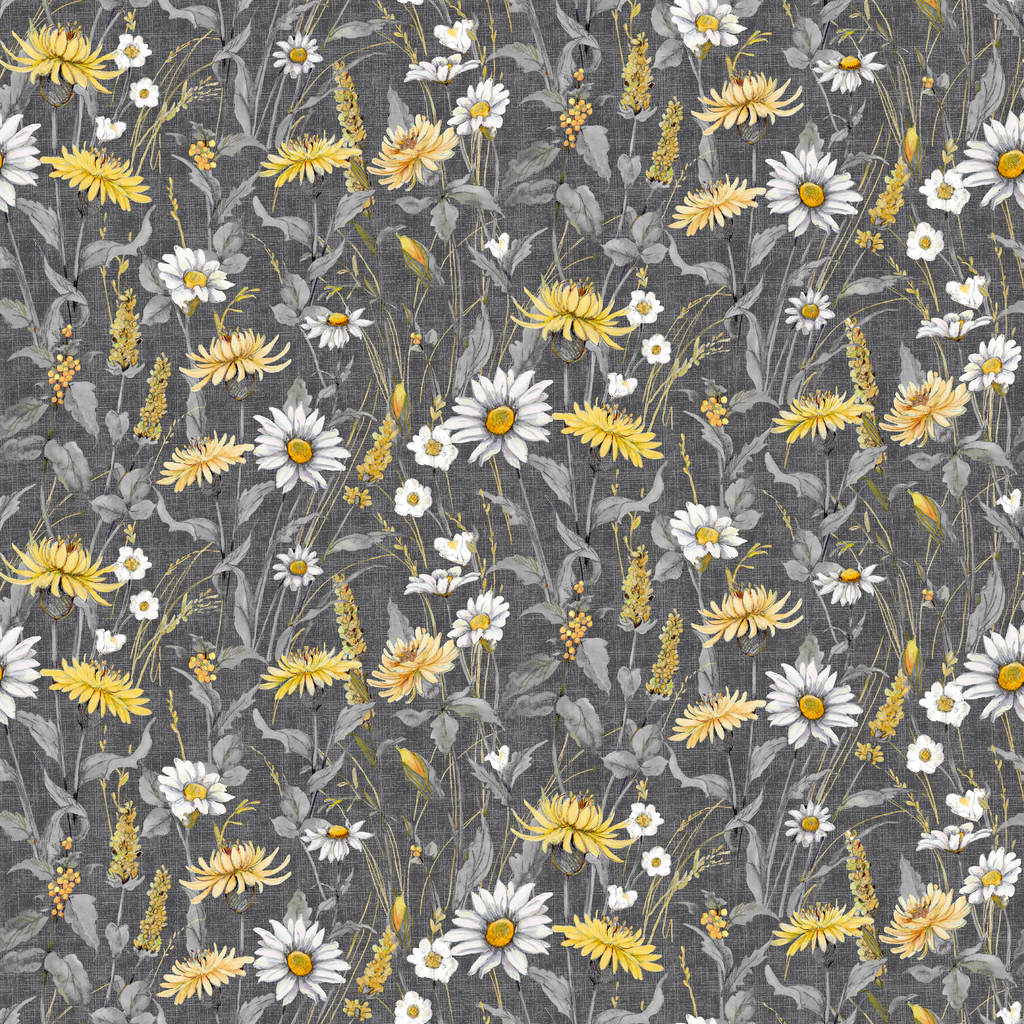 Susan Winget - Meadow Whispers - Charcoal Daisy Wildflower Fabric