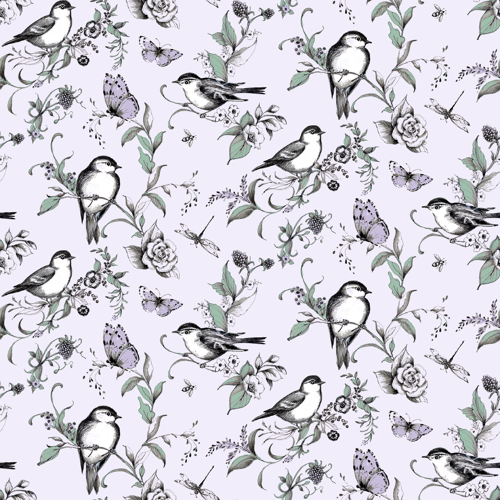 Susan Winget - Morning Songbirds - Lavender Botanical Fabric