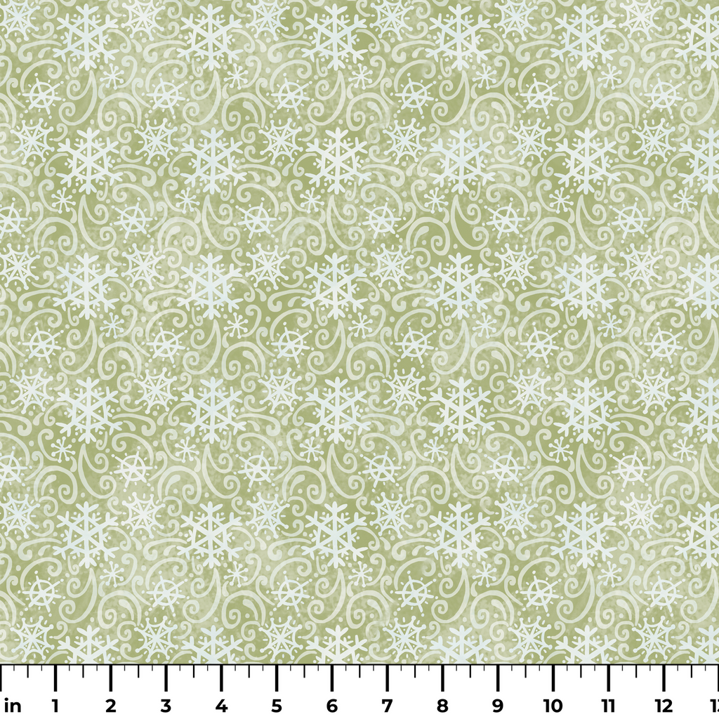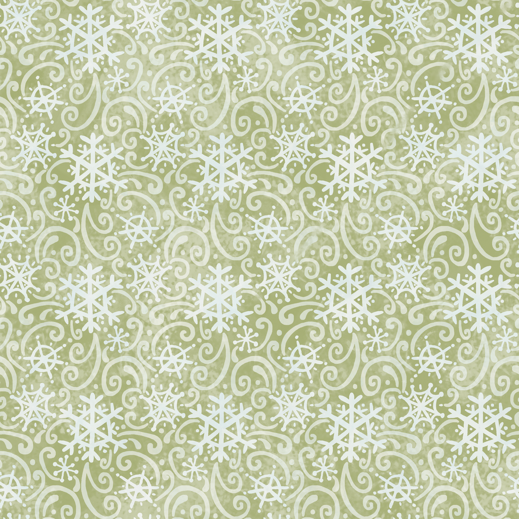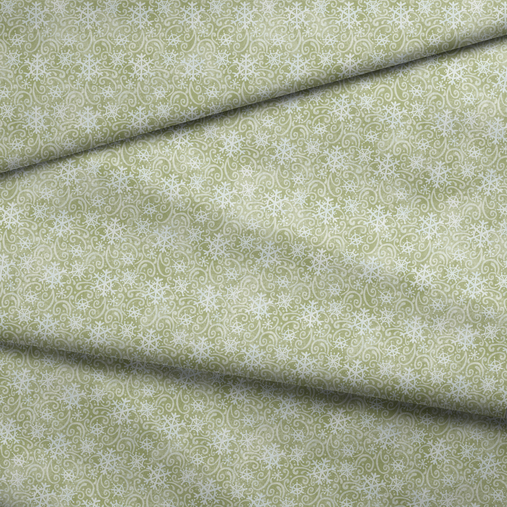 Elegant sage green and white snowflake pattern with swirling curves and ornate details, perfect for holiday home decor or winter-themed crafting projects.