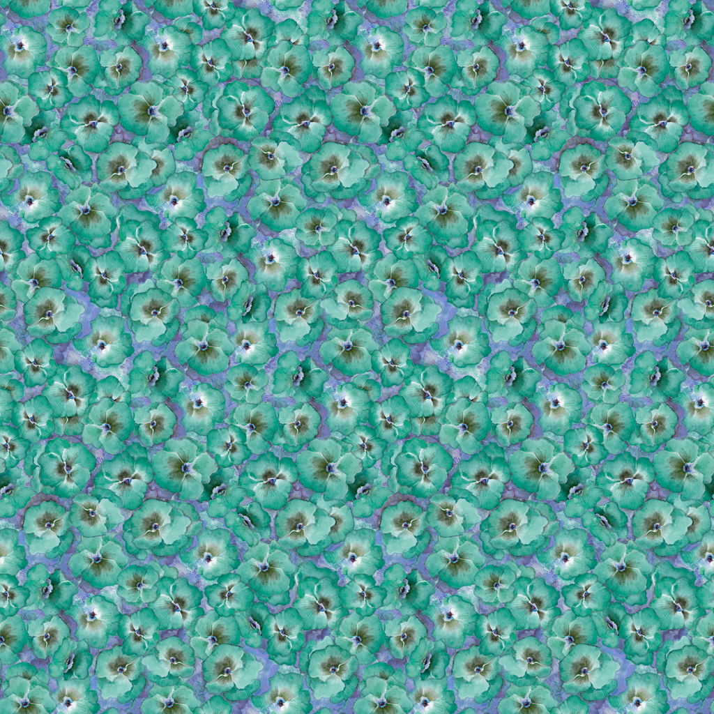 This vibrant teal floral packed pansies pattern creates a fresh look perfect for any space.