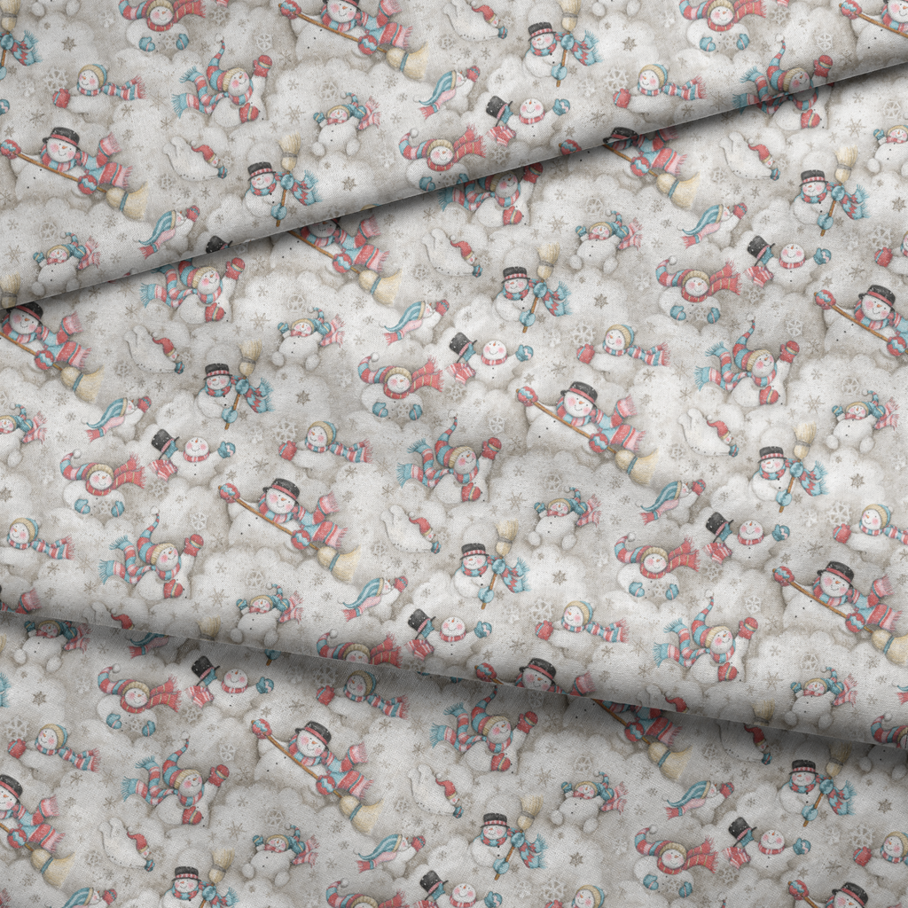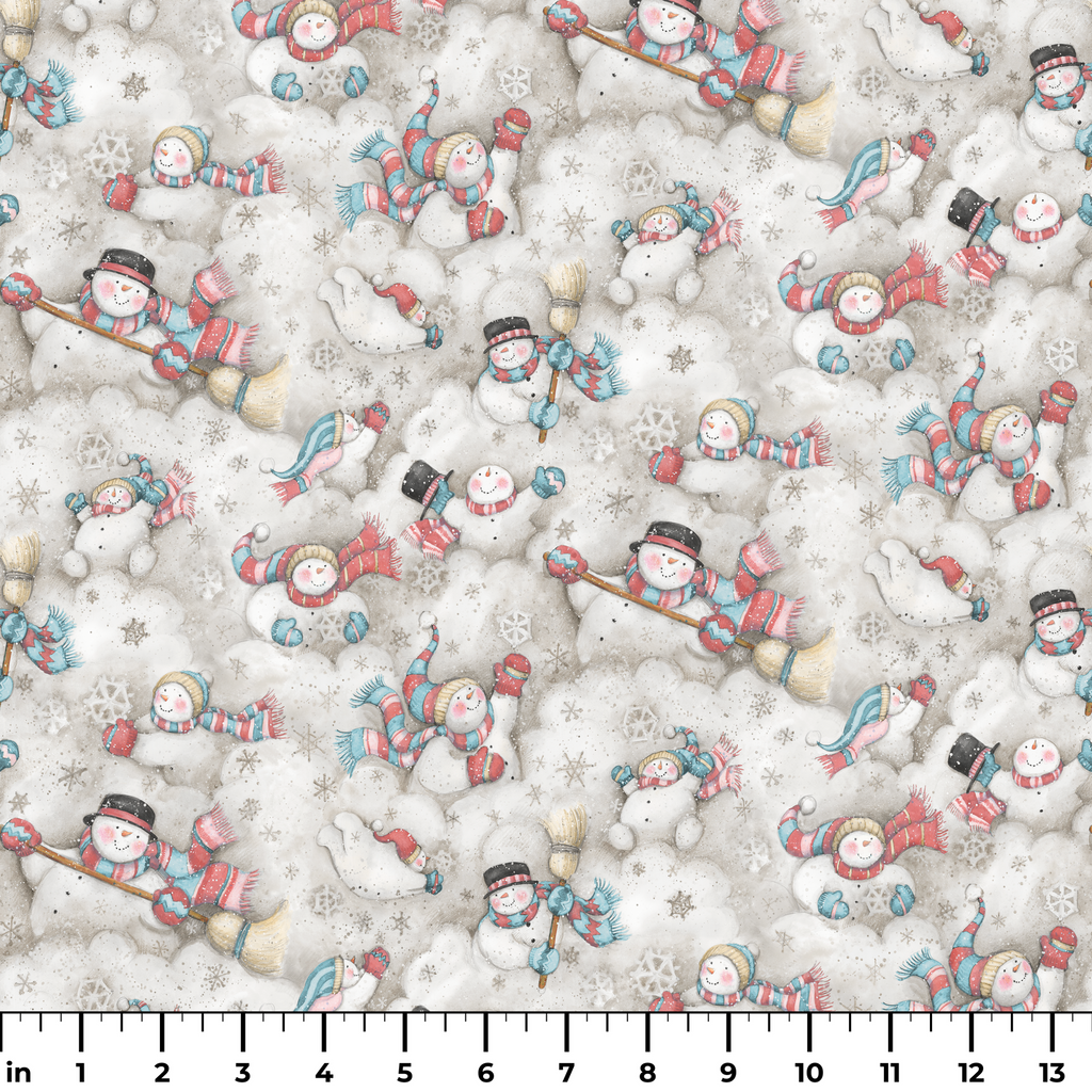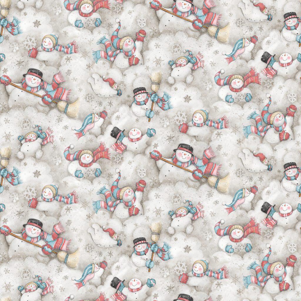 Susan Winget Playful Snowmen Neutral Tones Fabric