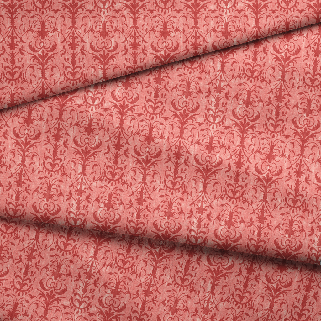 Elegant red damask pattern featuring ornate scrollwork and floral motifs in a vintage Victorian style, perfect for creating a sophisticated, timeless ambiance for any project.