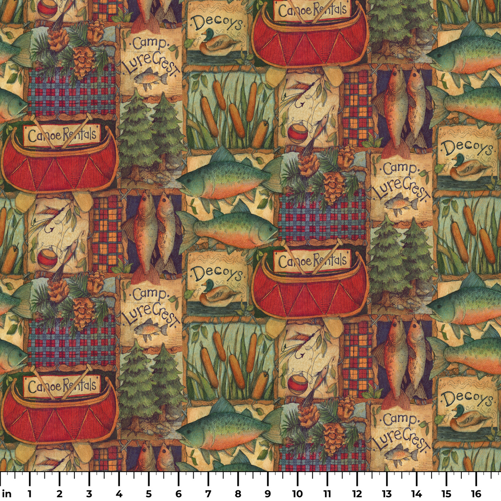 Susan Winget Rustic Fishing Camp Patchwork Fabric