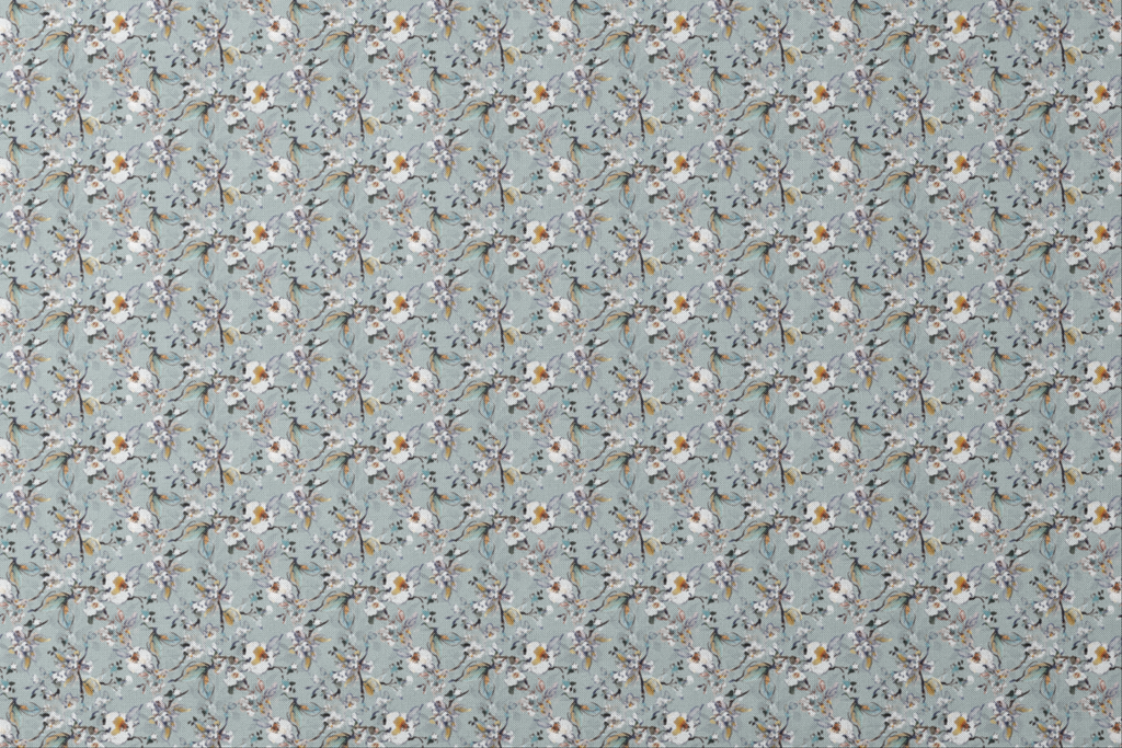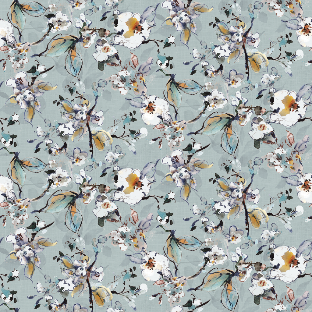 Delicate watercolor blossoms dance across a serene grey background in this ethereal floral pattern. Creamy white blooms with touches of amber, lavender, and indigo create a dreamy, artistic feel reminiscent of Asian brush painting. The loose, flowing brushstrokes give this fabric a gallery-worthy quality that would transform curtain panels or accent pillows into statement pieces. Perfect for creating a calming bedroom retreat or adding sophisticated flair to a dining room tablecloth.