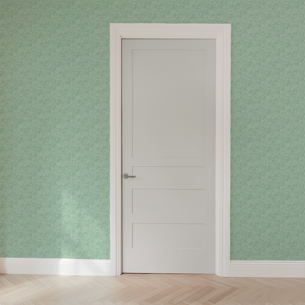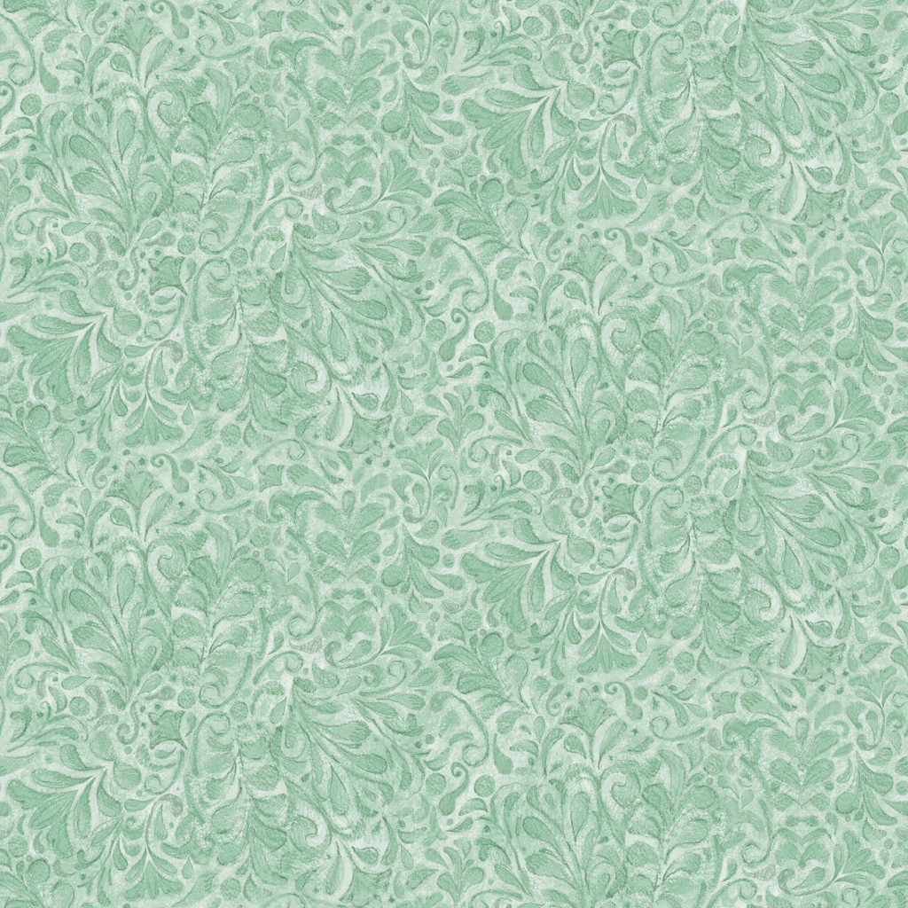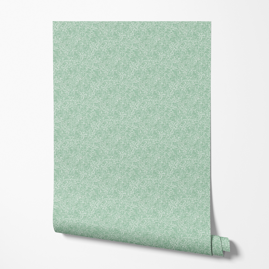 Elegant green floral pattern with intricate swirls and delicate leaf designs creates a soothing, vintage-inspired design perfect for any space.