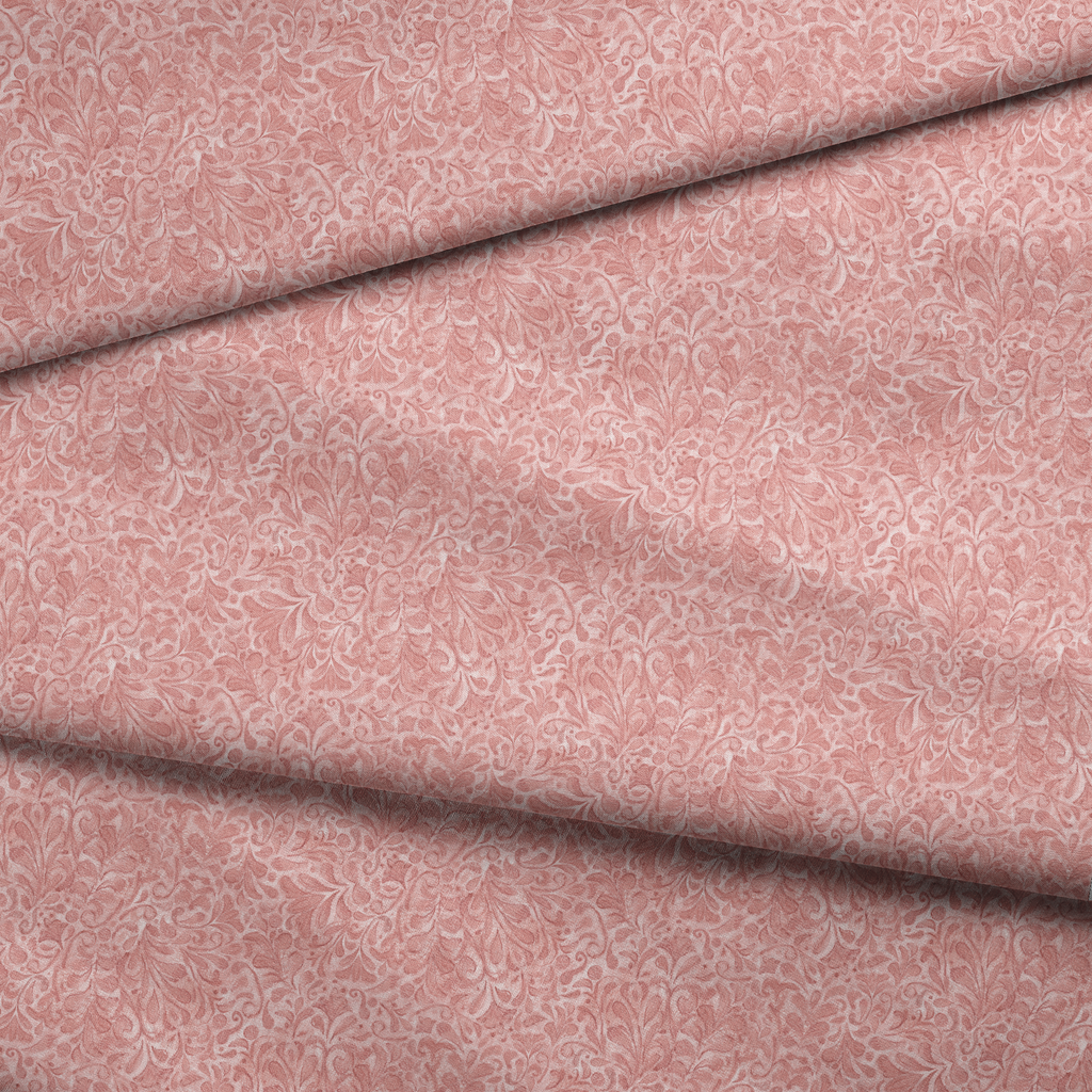 Elegant coral pink marbled scroll pattern with delicate swirls and flourishes, perfect for sophisticated home decor and crafting projects.