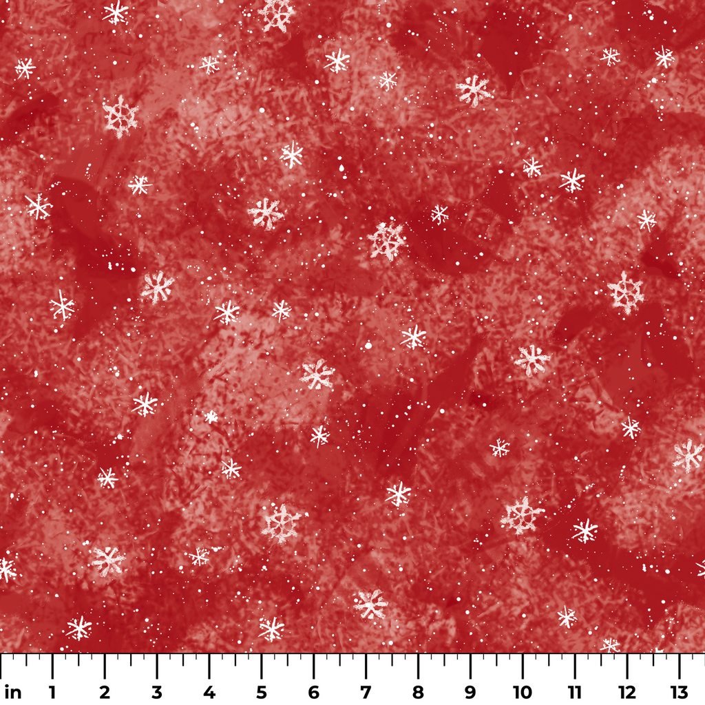 Festive red holiday background with delicate white snowflakes scattered across a textured, distressed surface, perfect for winter and Christmas seasonal decor.