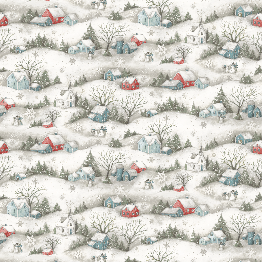 Susan Winget Snowy Scenic White Fabric