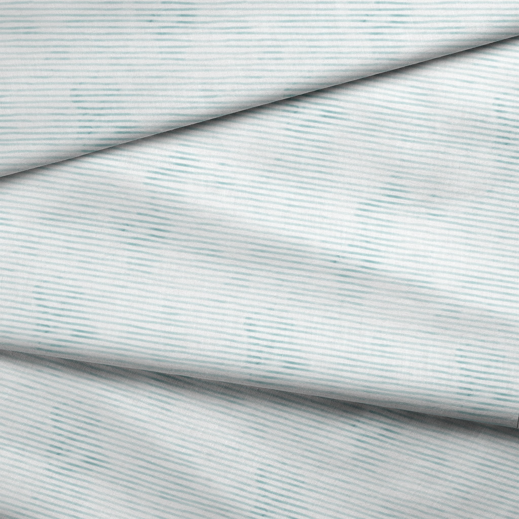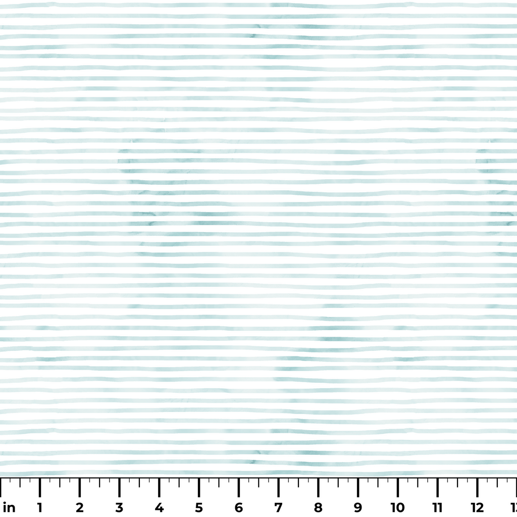 Delicate blue watercolor stripes dance across a crisp white background, creating a refreshing coastal feel with their hand-painted quality. The irregular edges and varied opacity of each stripe give this fabric a breezy, artistic charm that catches the eye without overwhelming. Perfect for summer quilting projects or nursery accessories where a touch of serenity is desired.
