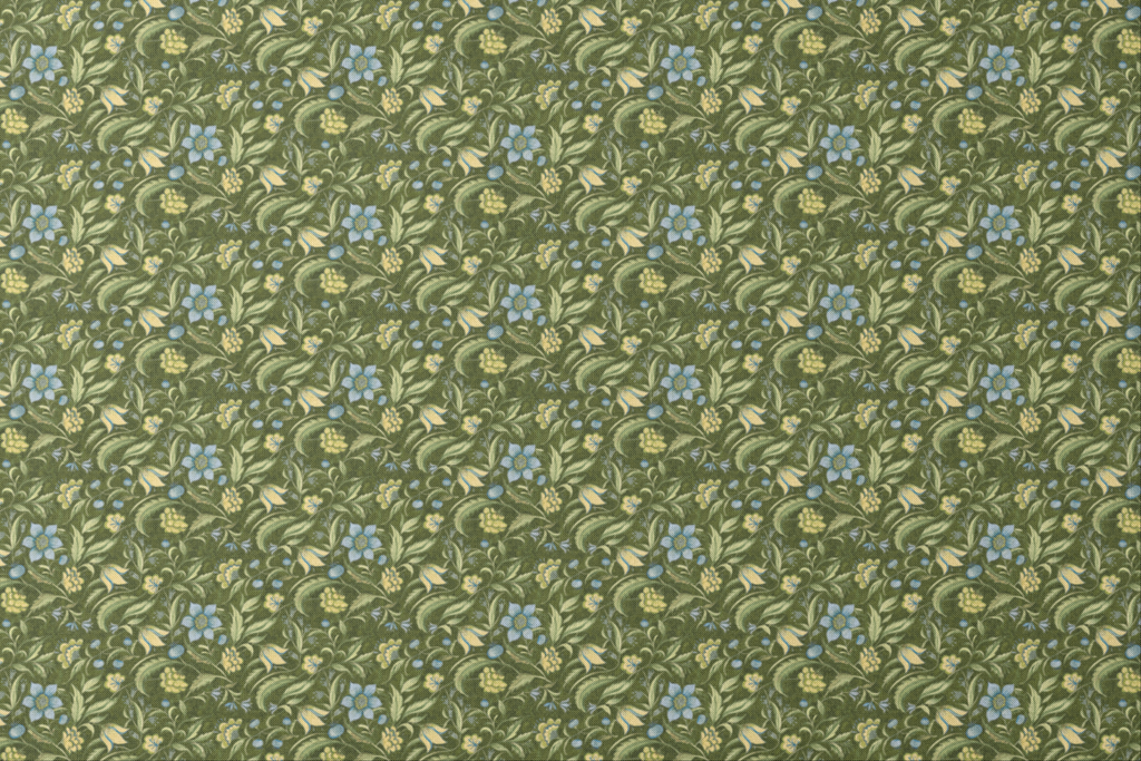 Susan Winget Vintage Floral Toile on Deep Olive Green Fabric
