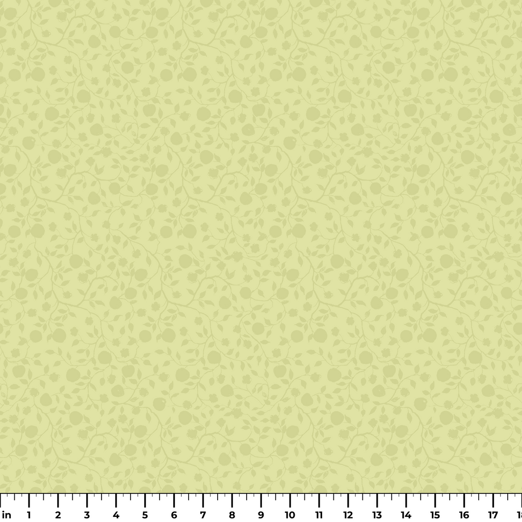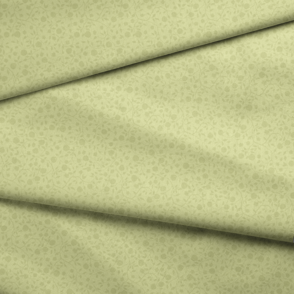 Delicate vines and tiny blossoms dance across a soft sage green background in this serene monochromatic design. The subtle tone-on-tone pattern creates a gentle, calming texture that whispers rather than shouts. Perfect for spring quilting projects or as a soothing backdrop in nursery décor, this fabric brings a touch of nature's tranquility to any creation.