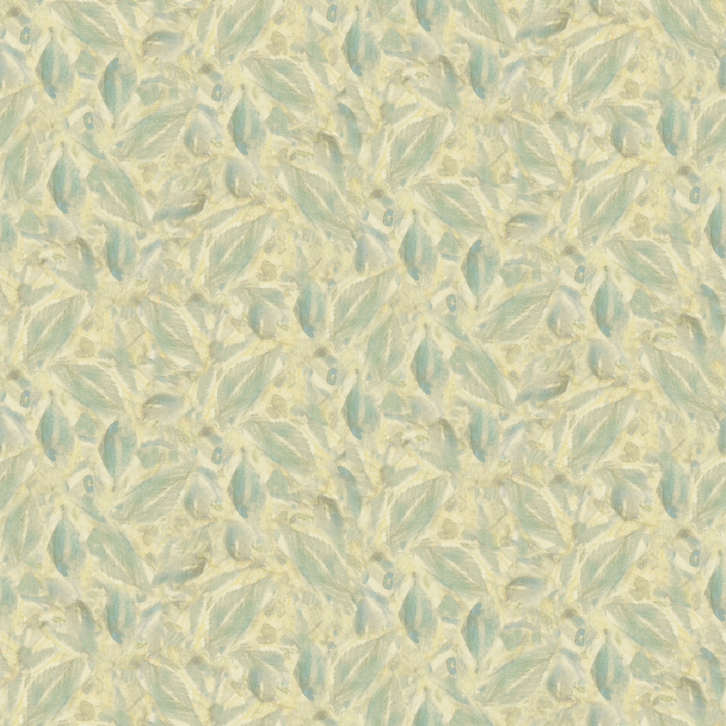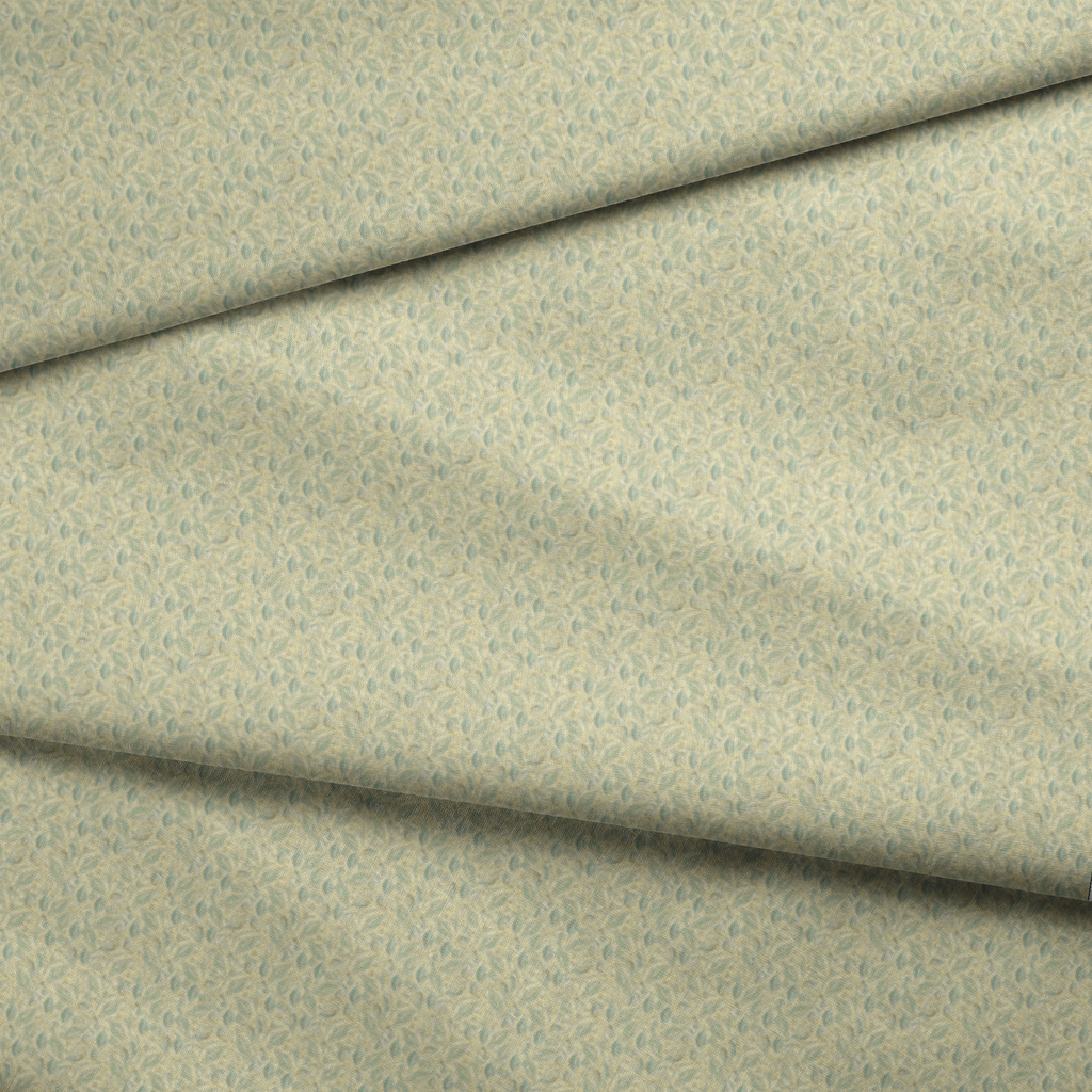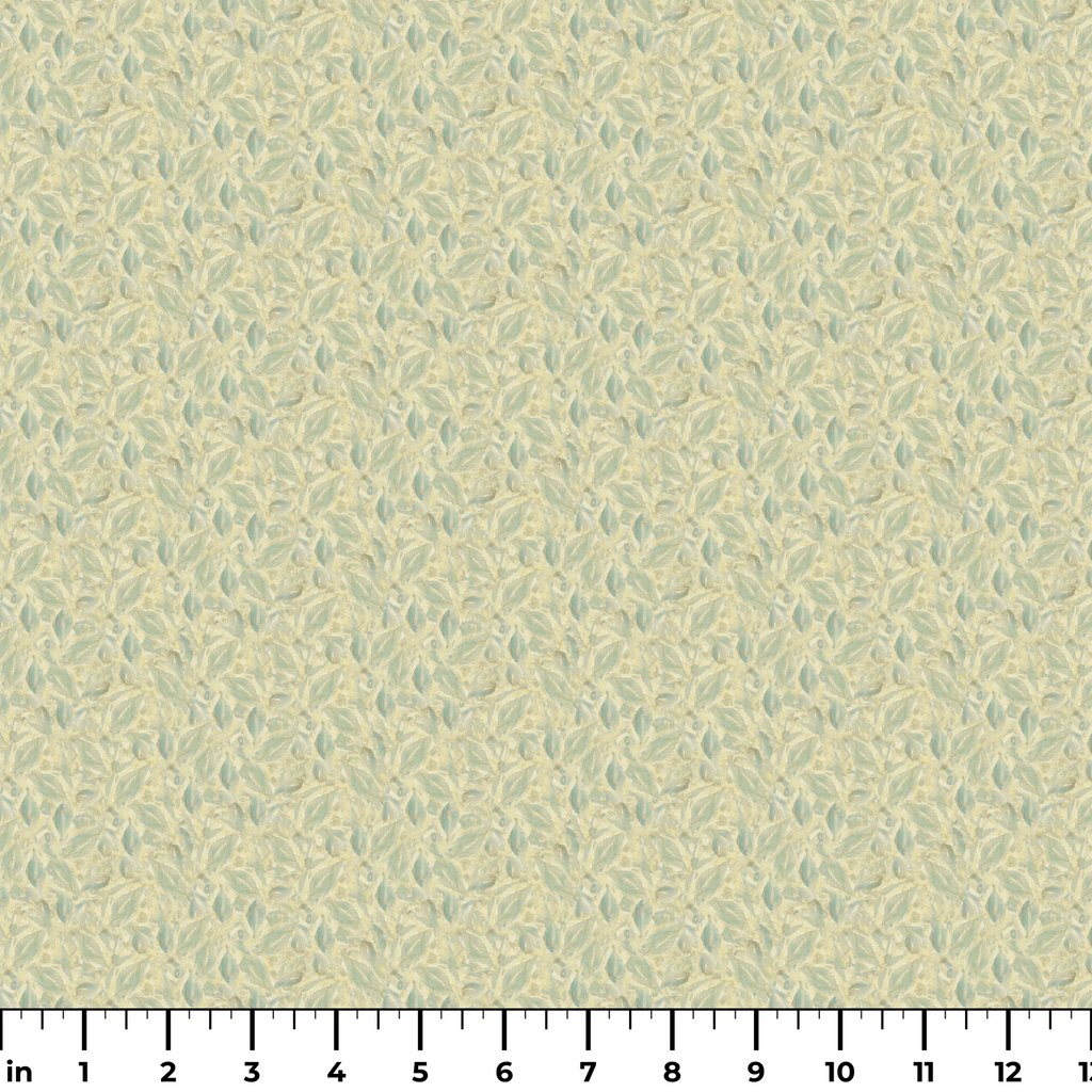 Delicate sage and mint-colored leaves dance across a soft cream background in this tranquil botanical print. The painterly quality gives the impression of leaves caught in gentle motion, creating depth through subtle watercolor-like brushstrokes. This versatile fabric would bring a touch of nature-inspired serenity to window treatments or accent pillows, and would work beautifully for spring and summer quilting projects where a calming, neutral palette is desired.
