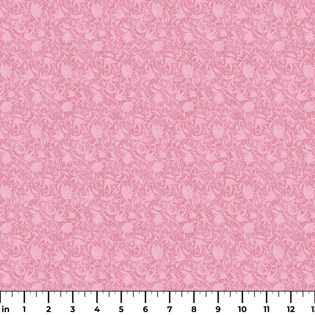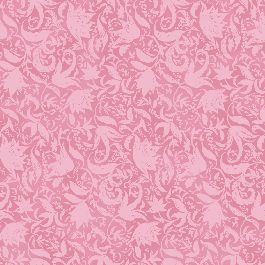 Elegant pink floral damask pattern featuring swirling vines and blooms- perfect for vintage-inspired home decor or romantic crafting projects.