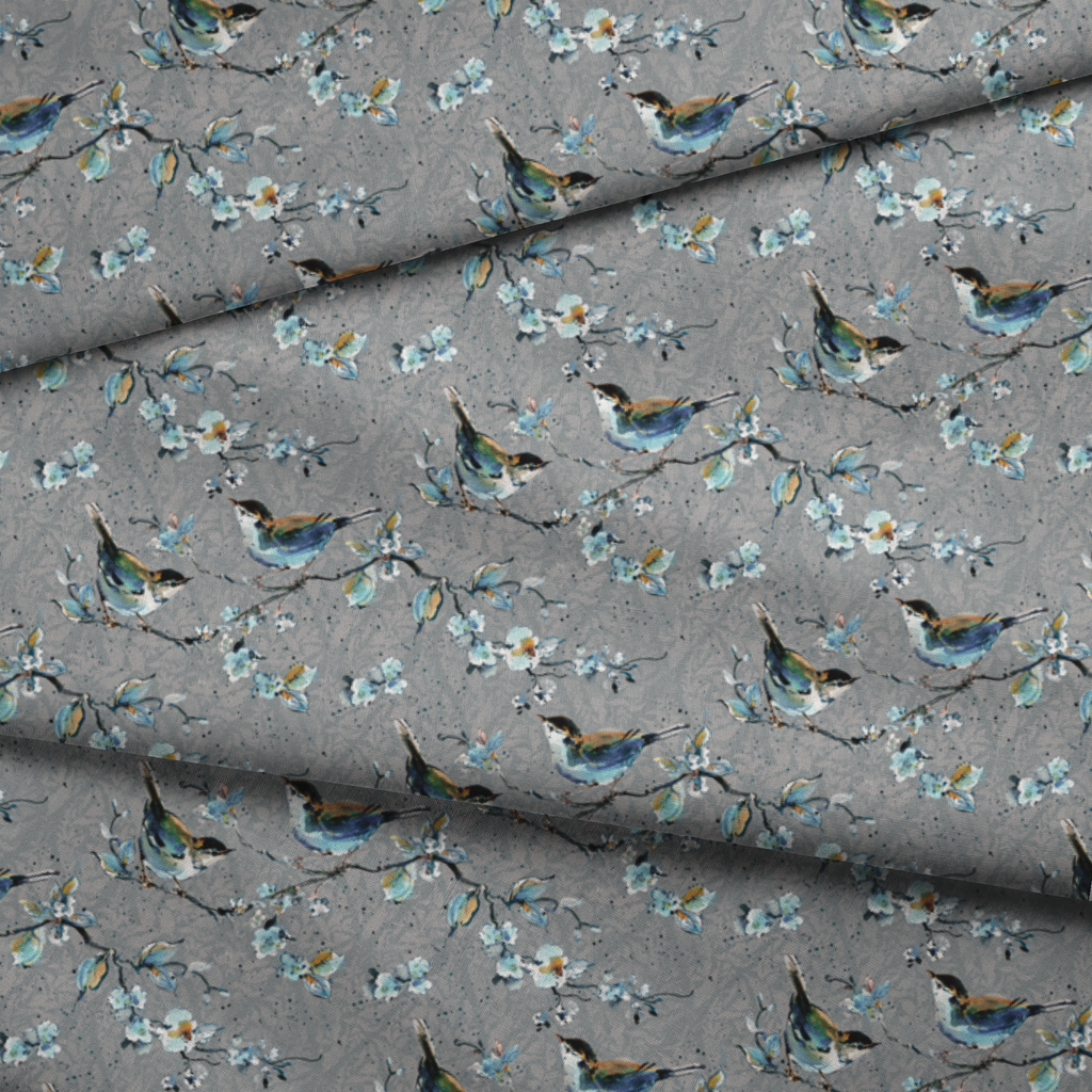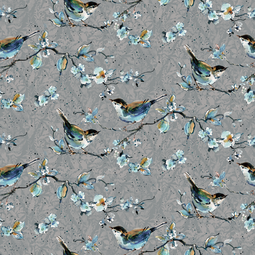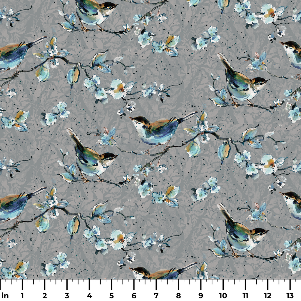 Susan Winget – Winter Song – Charcoal Bird Floral Fabric