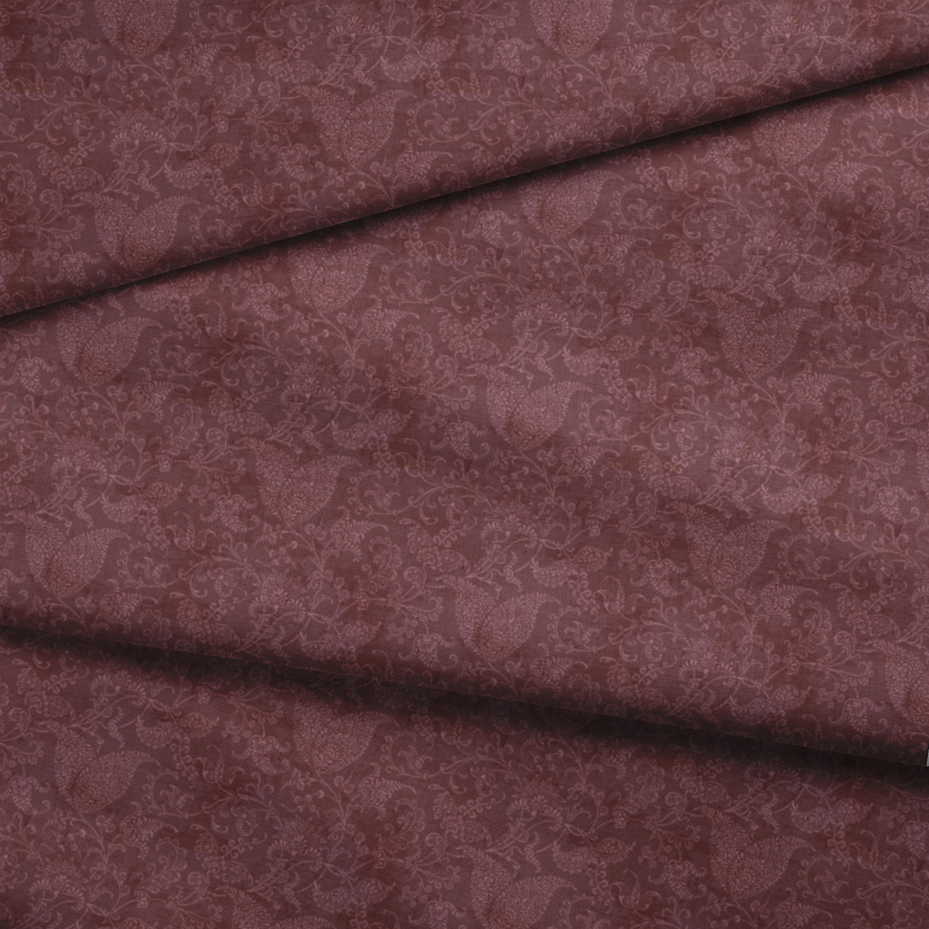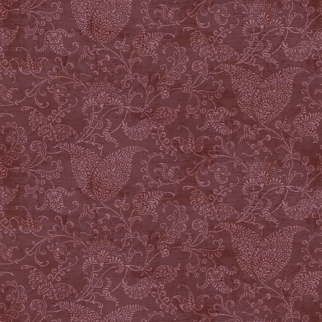 Elegant burgundy fabric featuring delicate floral paisley pattern in lighter contrasting thread, perfect for sophisticated home decor, upholstery, or vintage-inspired fashion projects.