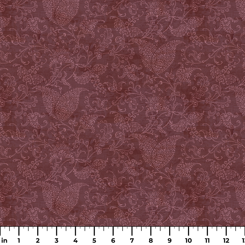 Suzanne Nicoll Burgundy Floral Paisley Toile Fabric