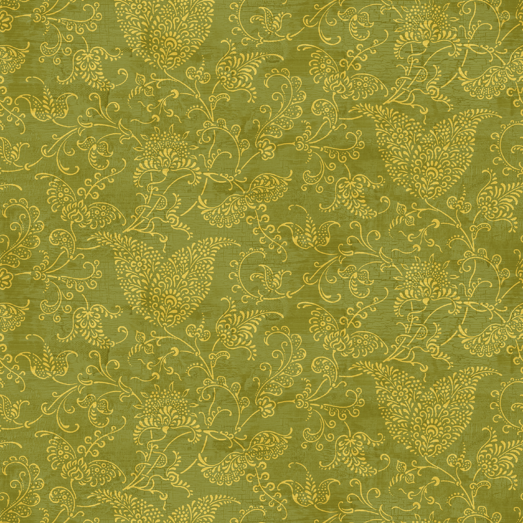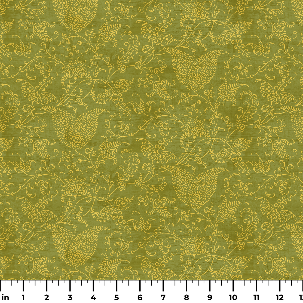 Suzanne Nicoll Ornate Golden Paisley on Olive Green Fabric
