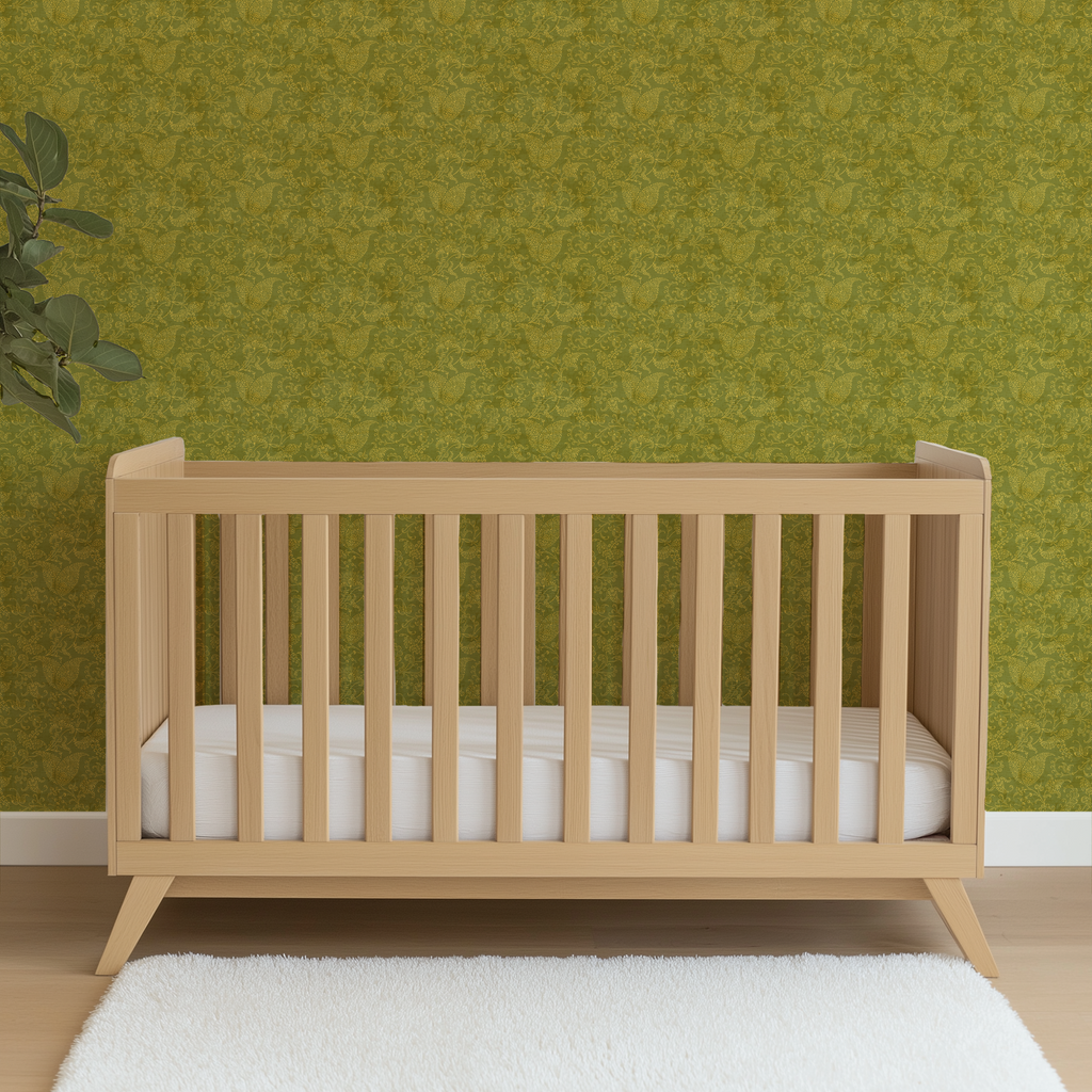 Suzanne Nicoll Ornate Golden Paisley on Olive Green Wallpaper
