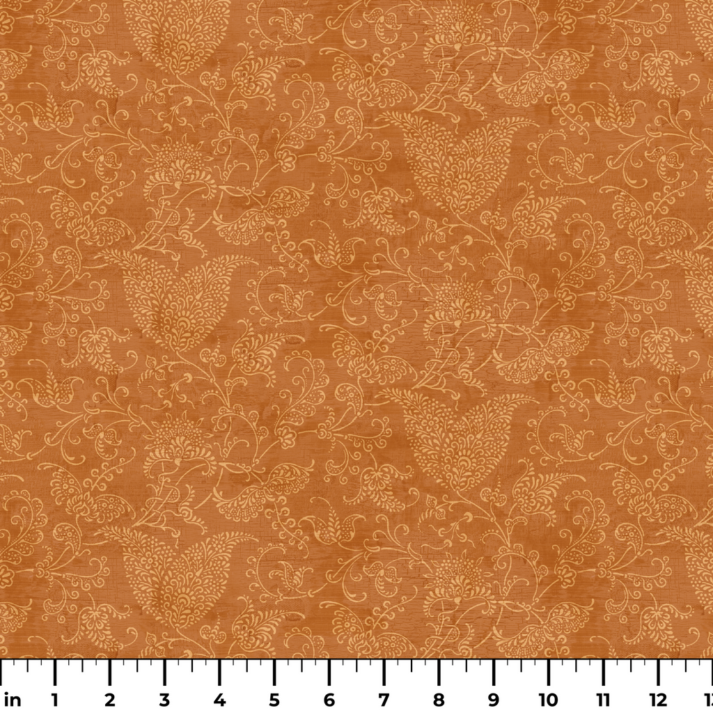 Suzanne Nicoll Vintage Floral Damask in Copper Amber Fabric