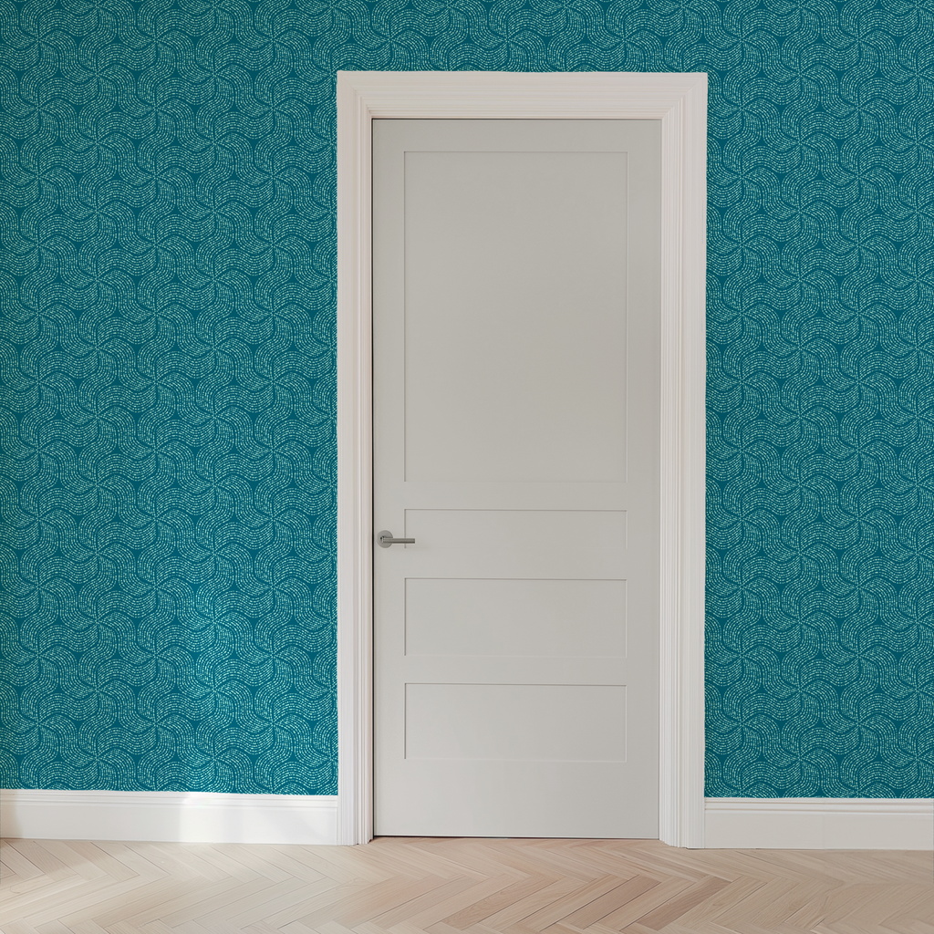 Swirl Dot on Teal Wallpaper