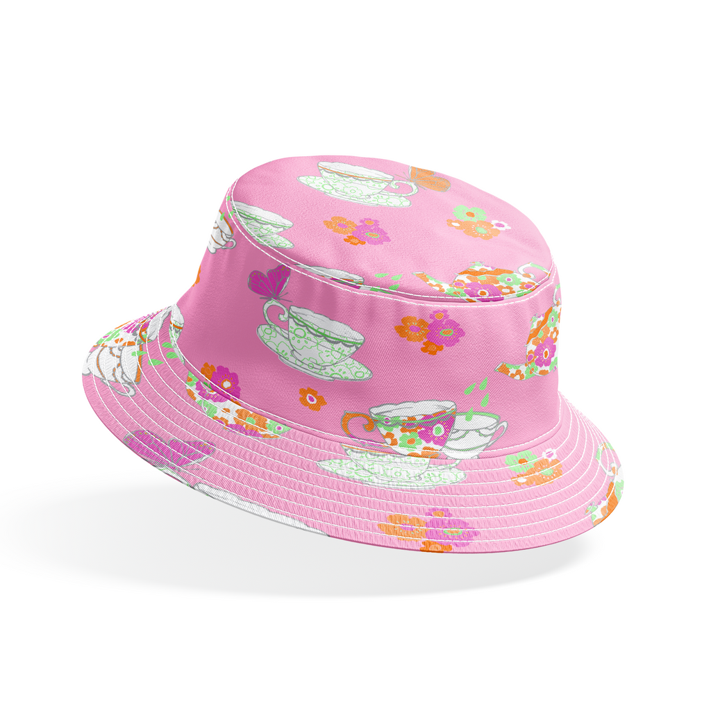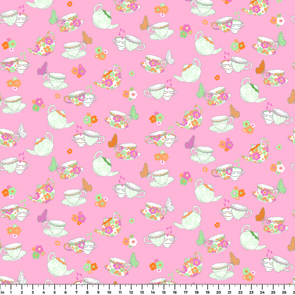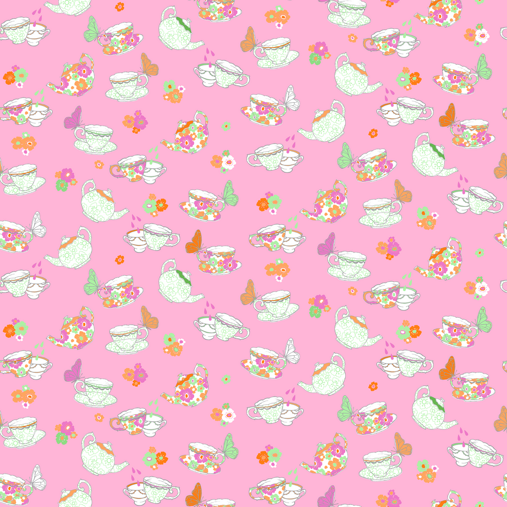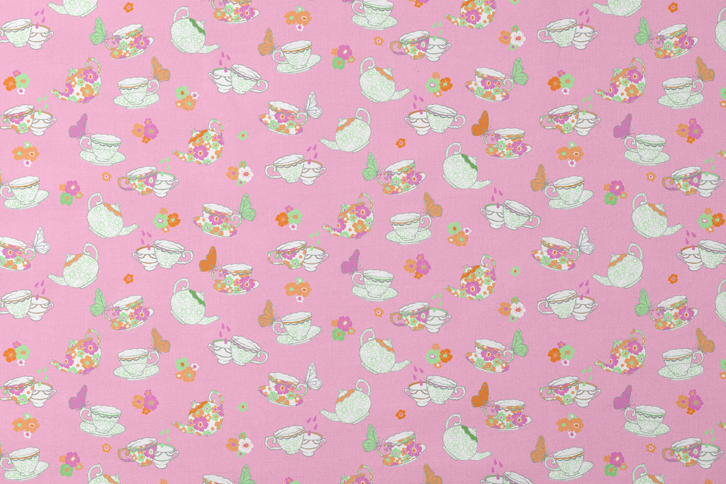 Tea Party on Pink Fabric