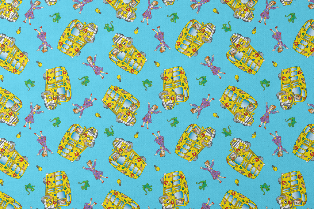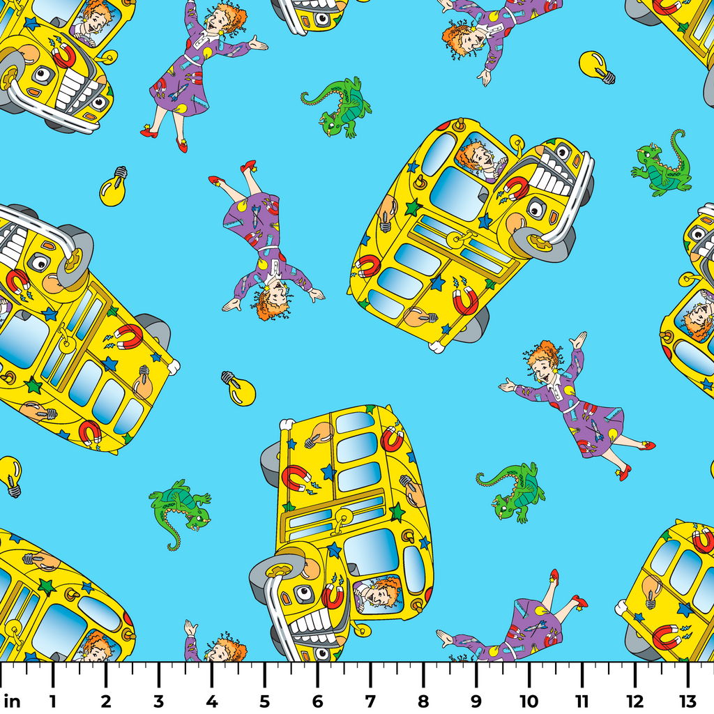 The Magic School Bus Ms. Frizzle Adventures on Blue Fabric