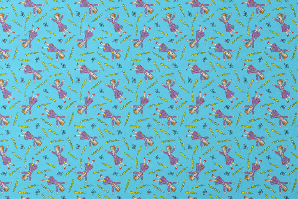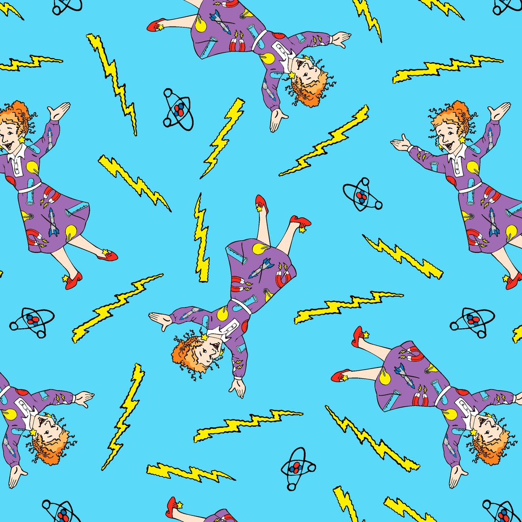 The Magic School Bus Ms. Frizzle Toss on Blue Fabric