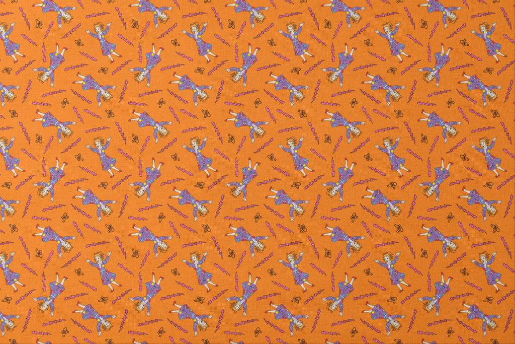 The Magic School Bus Ms. Frizzle Toss on Orange Fabric