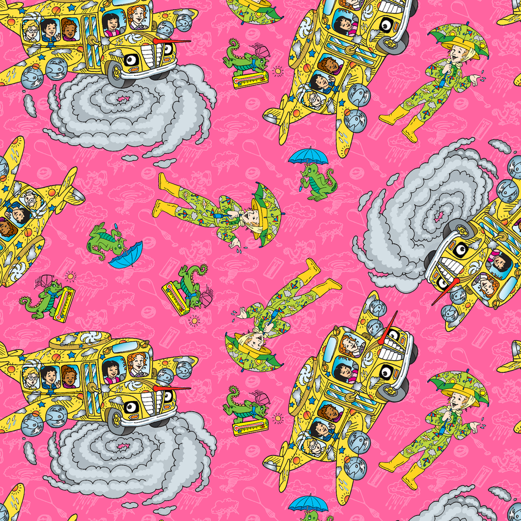 The Magic School Bus Weather Adventure on Pink Fabric