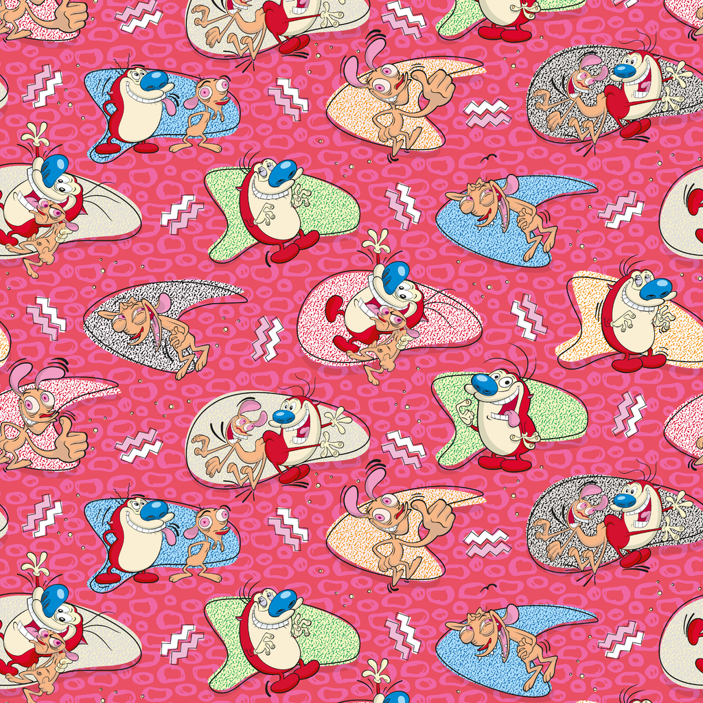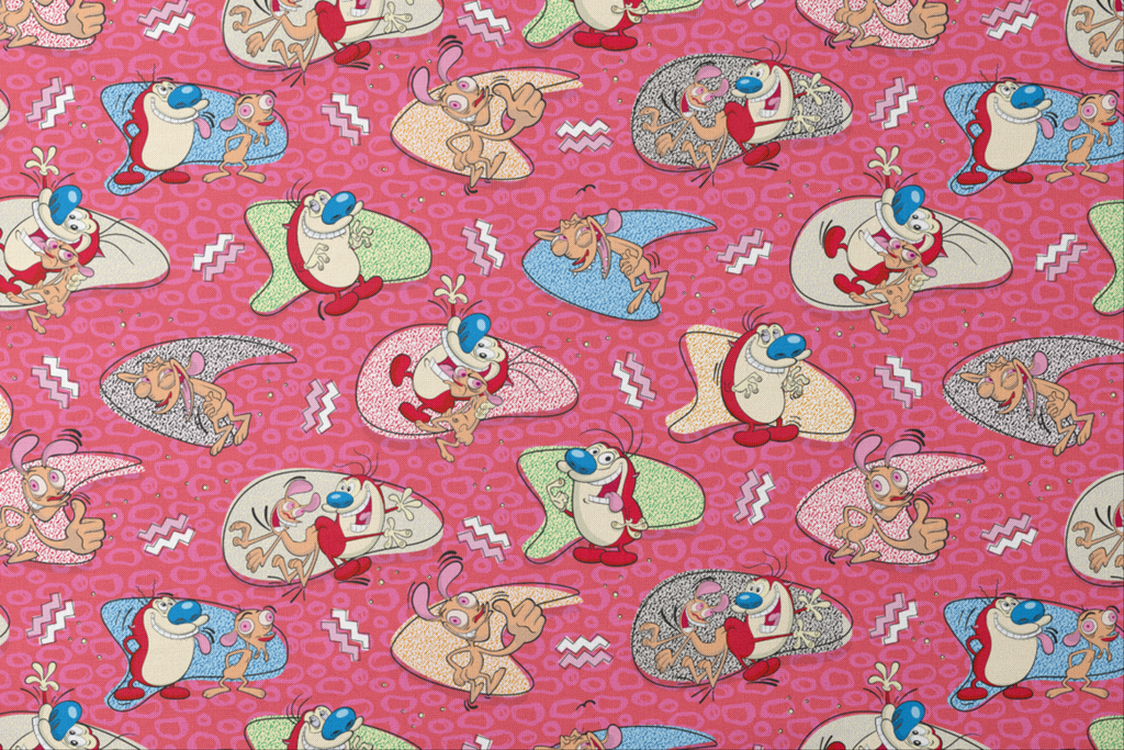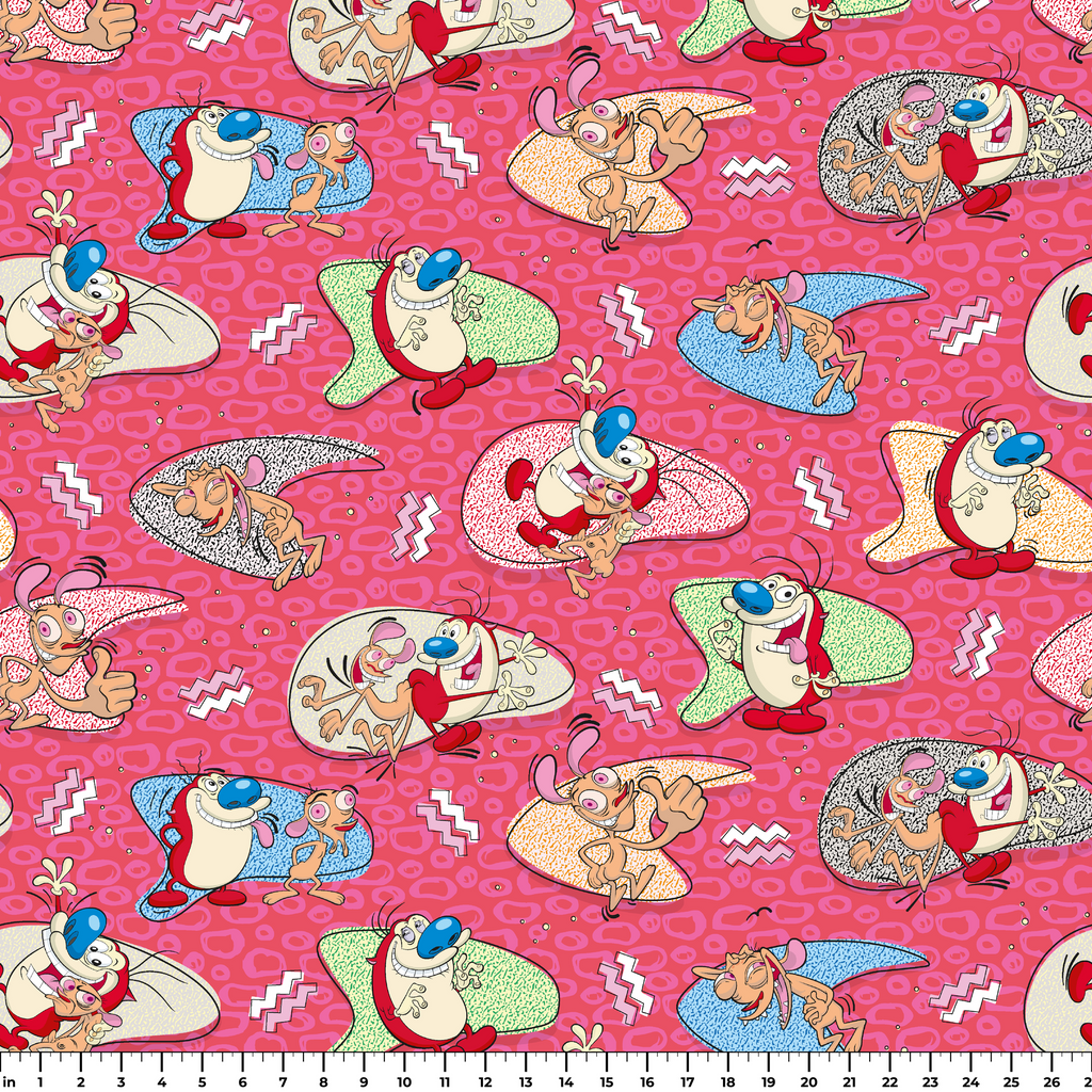 The Ren & Stimpy Show - Cartoon Throwback - Pink Retro Character Fabric