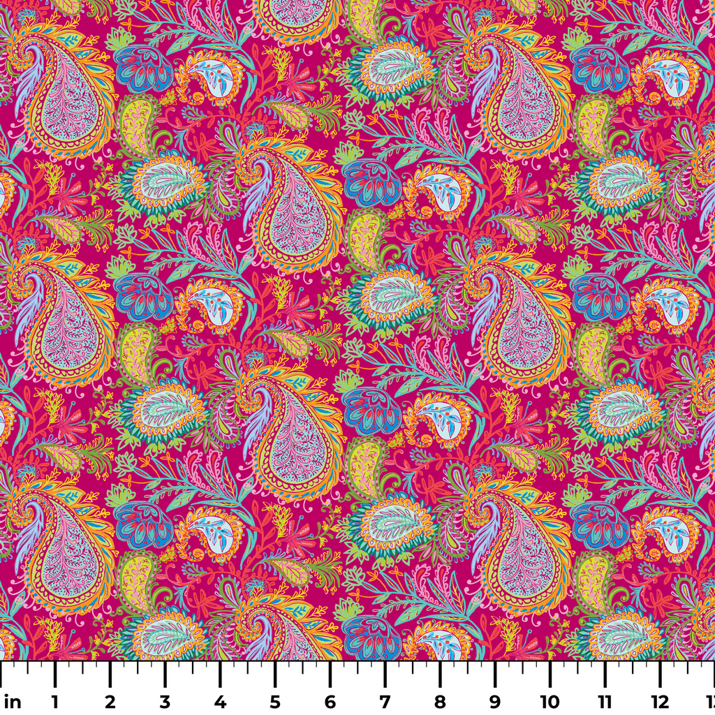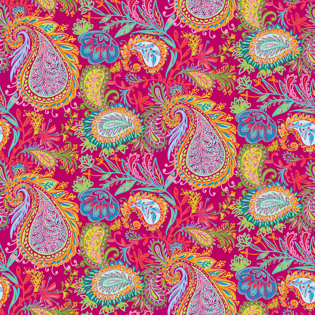 Tim Coffey - Carnival Swirl - Magenta Paisley Fabric