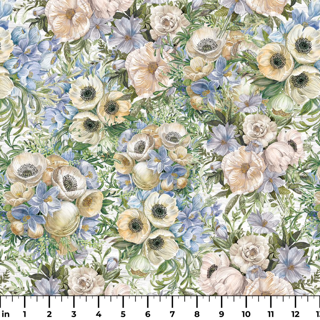 Tim Coffey - Serene Bloom - Ivory & Periwinkle Floral Fabric
