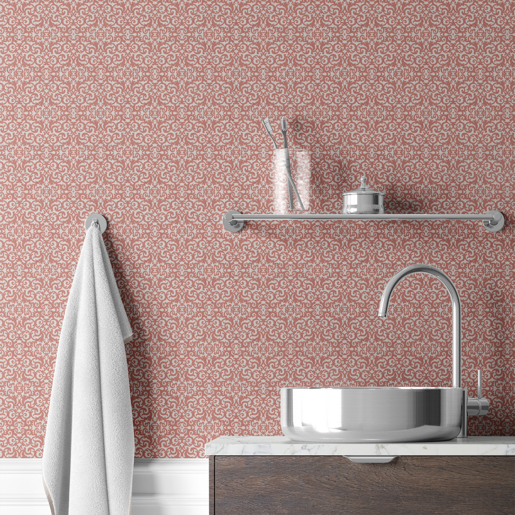 Tim Coffey Vintage Damask Pattern in Terracotta Wallpaper