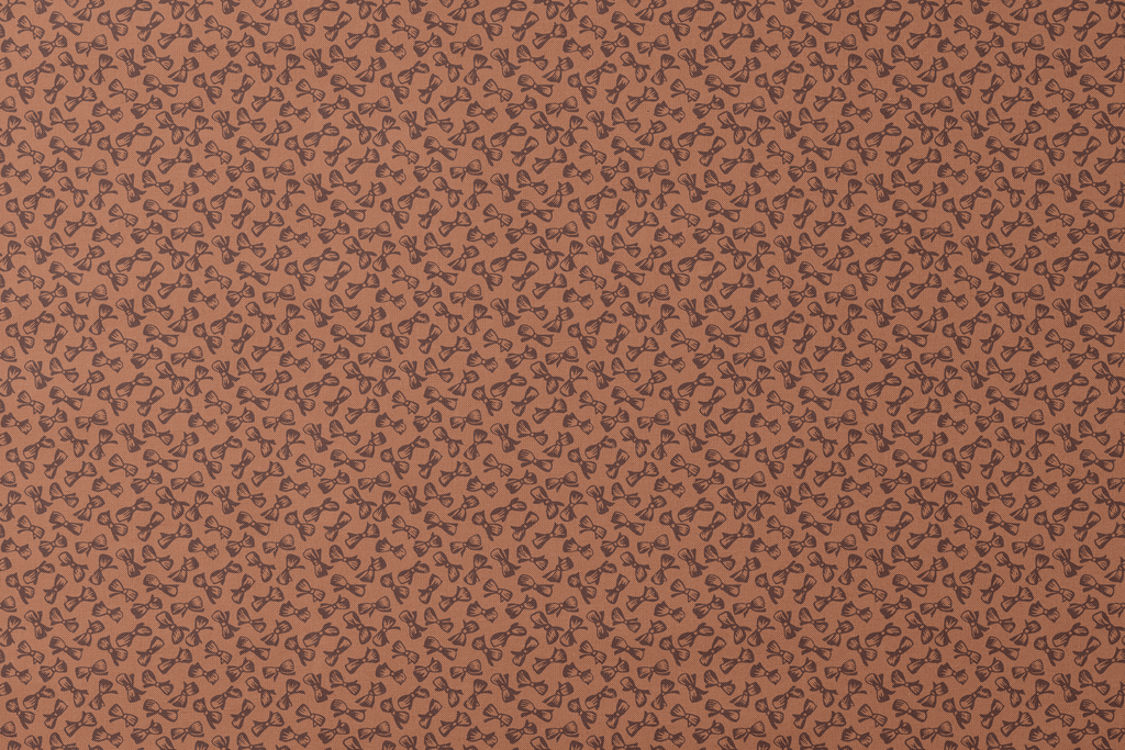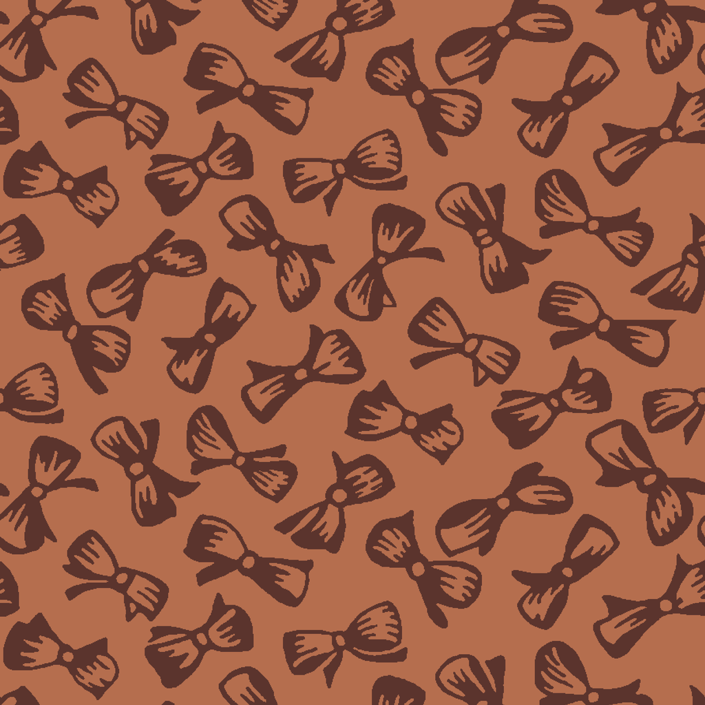 Charming chocolate brown bow pattern on warm brown background, perfect for vintage-inspired apparel and accessories with a playful, whimsical aesthetic.