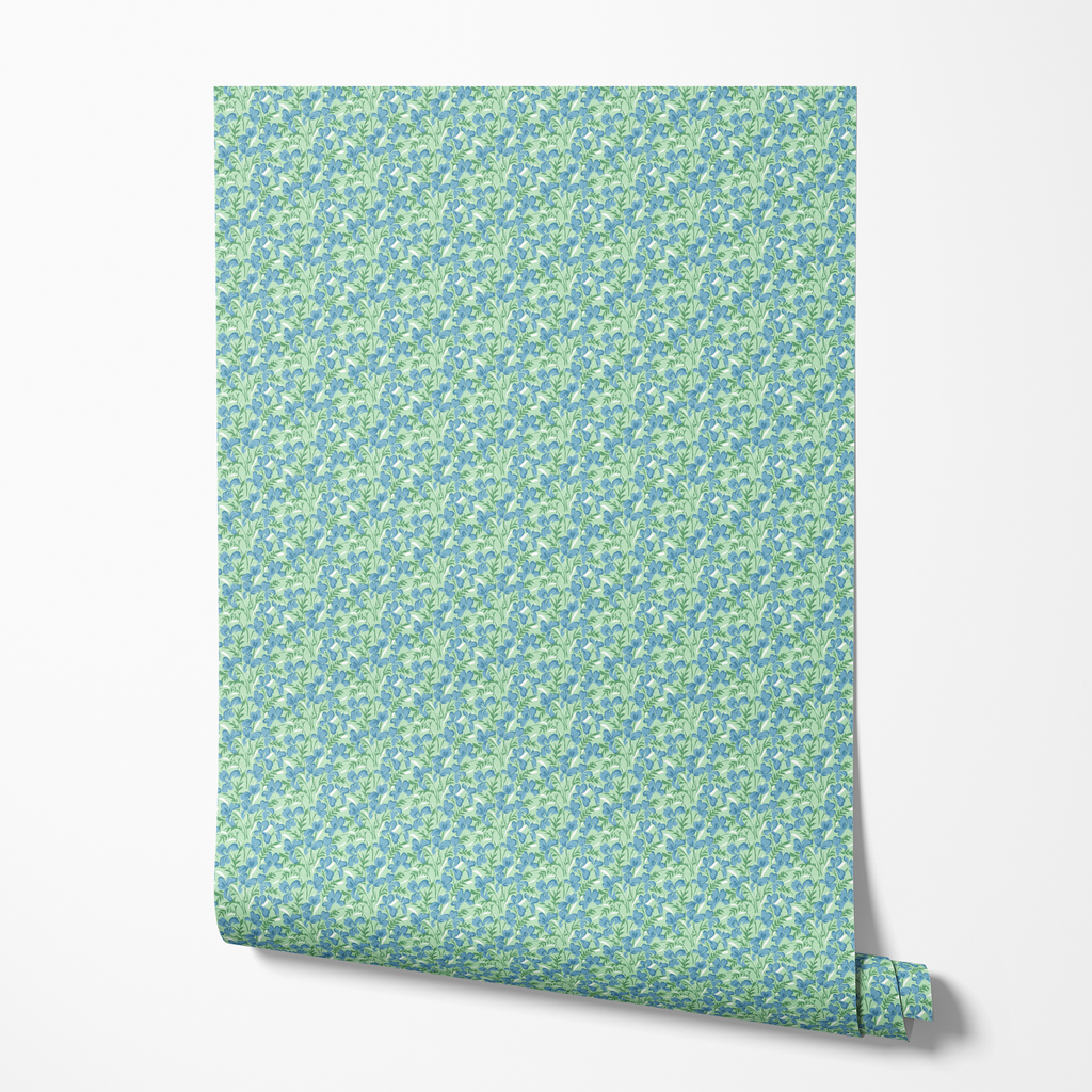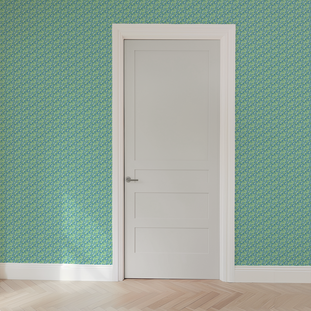 Tiny Blue Green Vintage Floral Wallpaper