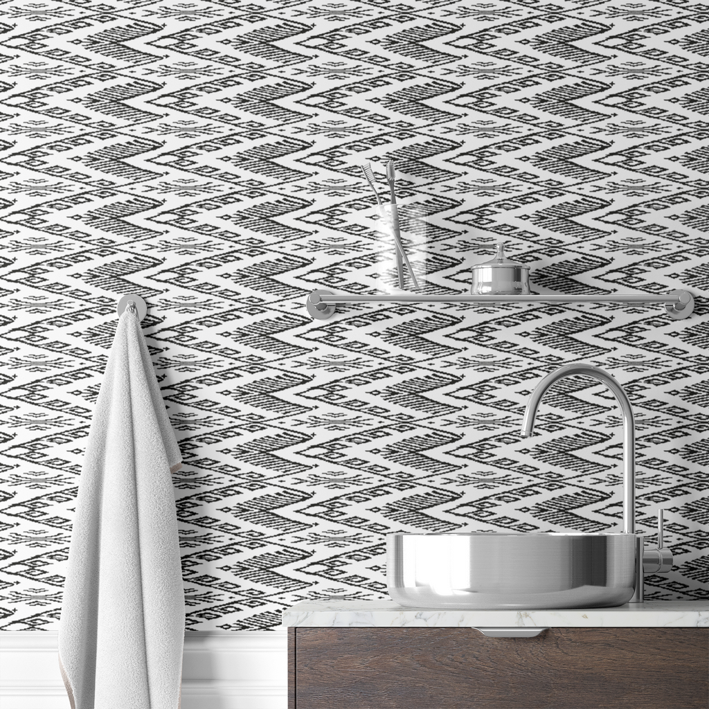 Trendy geometric tribal pattern featuring traditional diamond motifs in black and white. Perfect for bohemian home decor and contemporary textiles with a timeless global-inspired aesthetic.